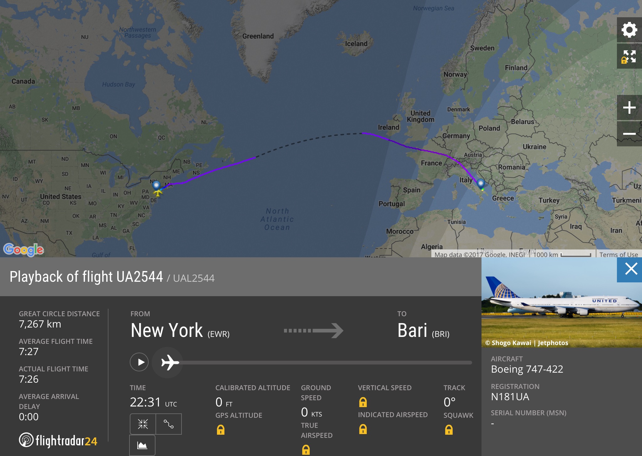 Gradita sorpresa a #Bari, ma era già previsto il suo arrivo da tempo. Un B747/400 della #United Airlines N181UA e’ atterrato a #Bari trasportando americani provenienti da #NewYork #EWR. L’aereo rimarrà in sosta fino al 1/9. E’ un volo charter operato con questo aereo oramai sulla via del tramonto. Presto verranno ritirati dal servizio, ne rimangono in servizio una quindicina.