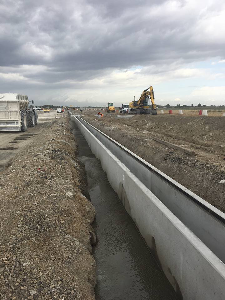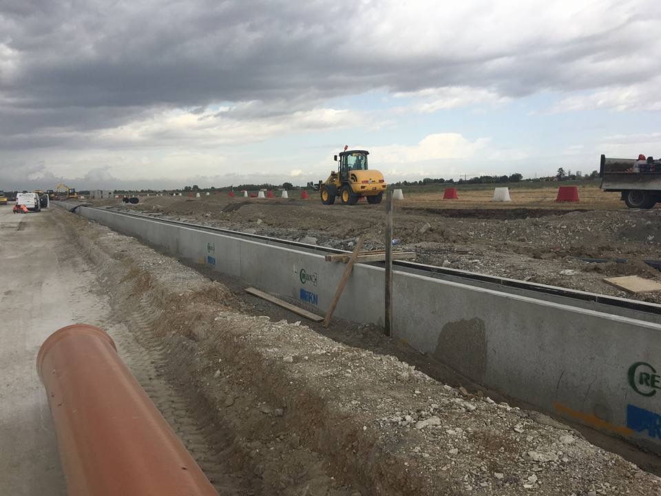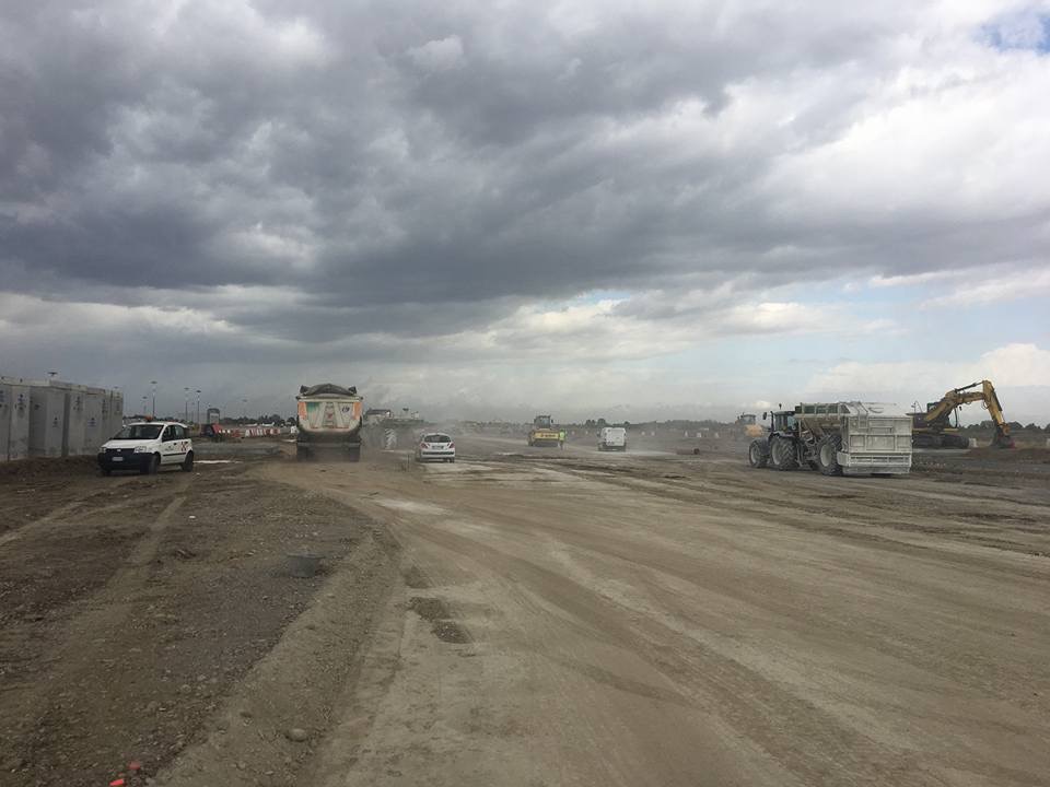 In piena attività le lavorazioni sulla porzione di taxiway che verrà portata a 30 metri di larghezza, come già lo sono gli altri segmenti.