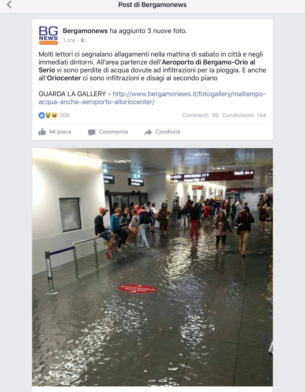 Dopo le immagini di Houston e Città del Messico, le foto di #allagamenti arrivano anche in #Italia con queste di Bergamonews che ritrae come stamani si è’ trovato l’aeroporto di #Bergamo dopo il #temporale di questa mattina.