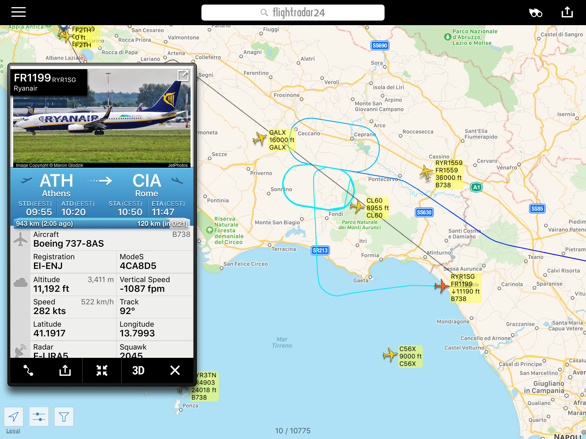 Tre aerei in attesa ora si stanno dirigendo a #Napoli. Due executive ed un volo #Ryanair da #Atene, tutti con destinazione #Ciampino.