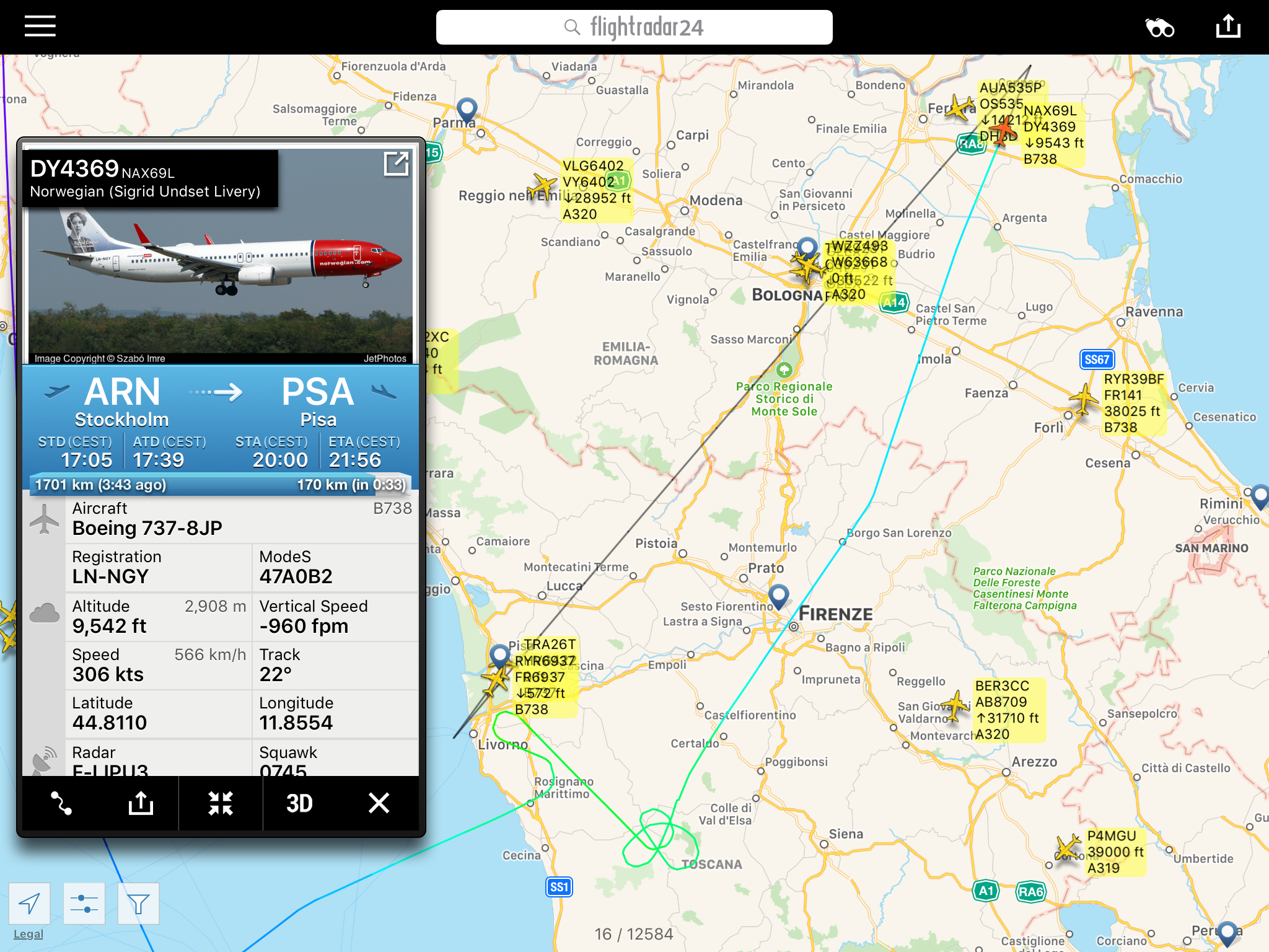 Ieri sera, questo #volo #Norwegian inizialmente diretto a #Pisa e dirottato a #Venezia del quale abbiamo dato notizia, e’ poi ridecollato per Pisa quando la situazione si era temporaneamente stabilizzata. Purtroppo le condimeteo sono di nuovo peggiorate ed ha dirottato a #Roma #Fiumicino.