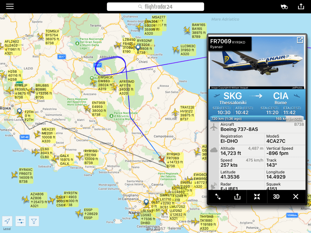 In questa immagine, ora il #volo FR7069 da #Salonicco per #Roma #Ciampino e’ in dirottamento a #Napoli causa avverse condizioni meteorologiche sull’aeroporto romano