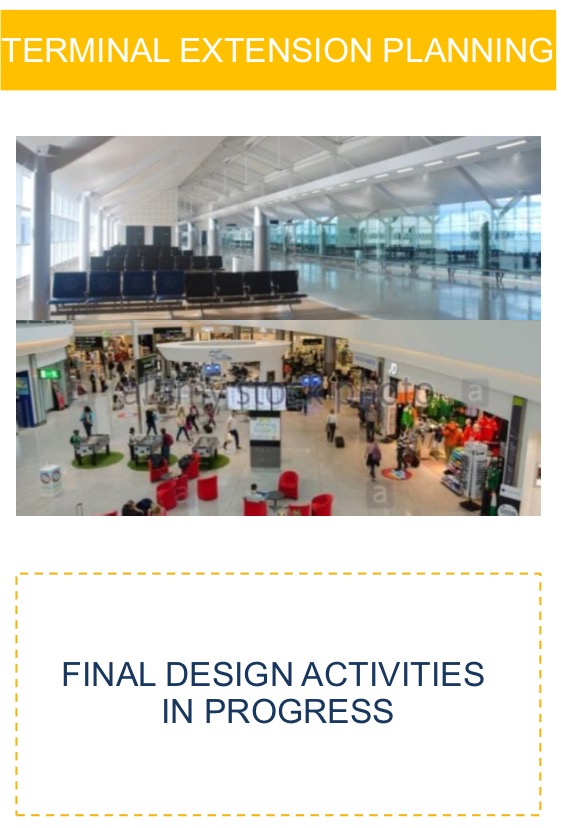 Questa immagine tratta da una #presentazione di AdB Aeroporto di Bologna riporta che sono in corso le attività di progettazione finale dell’ampliamento del terminal dell’aeroporto. A spanne la realizzazione dovrebbe terminare nel corso del 2020.