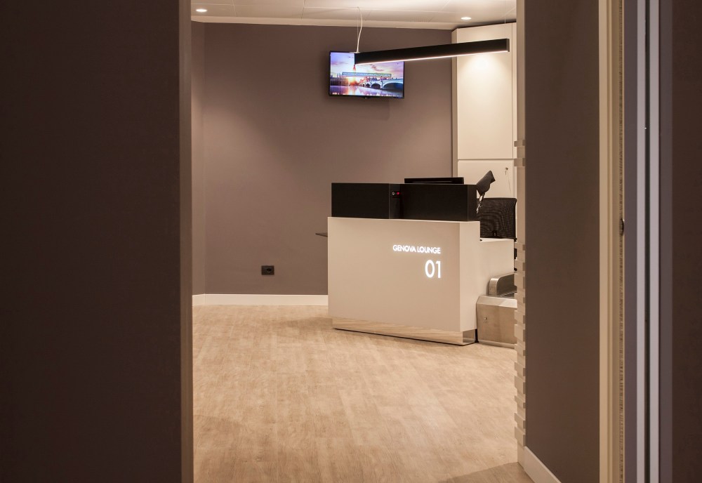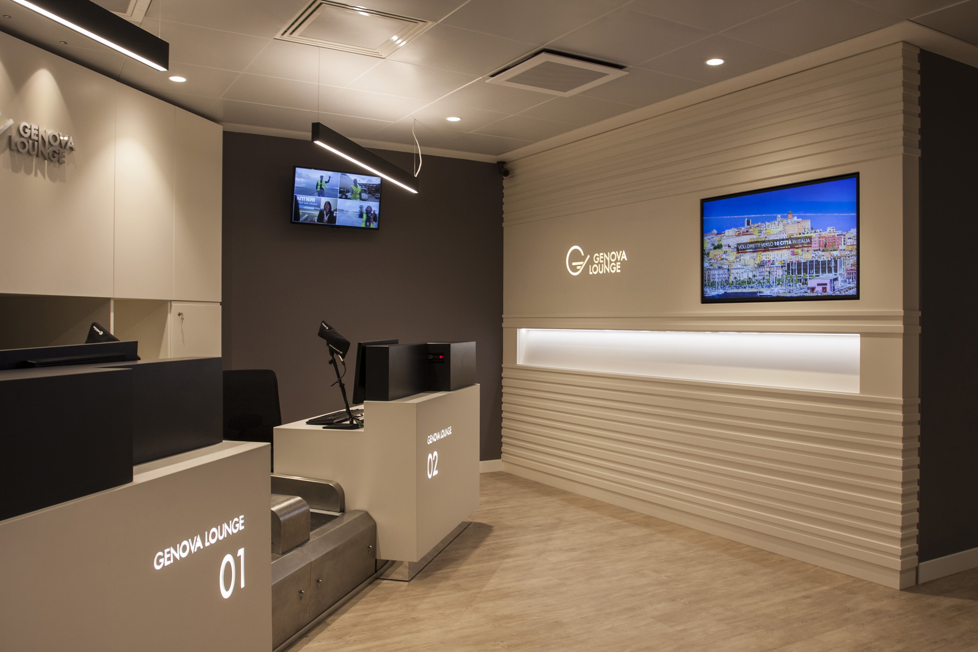 Si chiama Genova Lounge ed ha una superficie praticamente raddoppiata rispetto alla precedente. si passa dai 90 metri quadri a quasi 200.All’ingresso della Genova Lounge si trovano due banchi check-in con personale dedicato..
