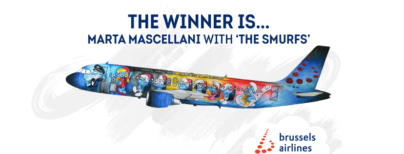 E’ Marta Mascellani, autrice di The Smurfs ad aggiudicarsi il contest indetto da Brussels Airlines per trovare un tema per l’aereo nr. 5 che vestirà una colorazione diversa da quella di solito in uso dagli aerei della compagnia belga. I nostri complimenti a questa artista.
