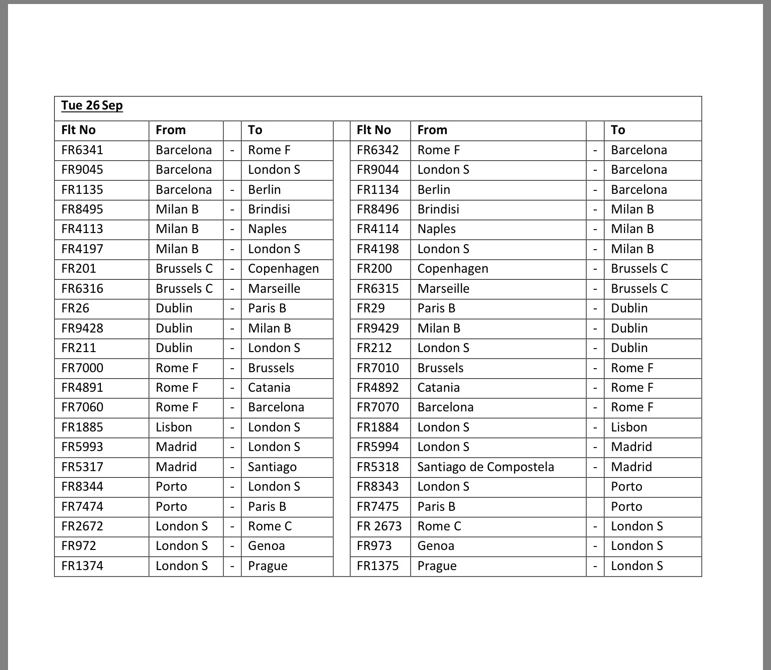 #Ryanair comunica i #voli #cancellati per oggi 26-9-2017