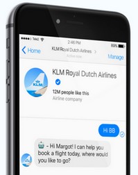Roma, 28 settembre 2017 – Da oggi, i clienti #KLM possono prenotare un biglietto aereo su Messenger con l’aiuto dell’intelligenza artificiale. Il nuovo bot di KLM si chiama #BlueBot (BB) e, per conto della compagnia aerea, chatta con i clienti via Messenger assistendoli nella prenotazione di un volo. Grazie a questo tipo di intelligenza artificiale, la prenotazione di un biglietto potrà svolgersi in totale semplicità, senza l’intervento di un agente KLM.