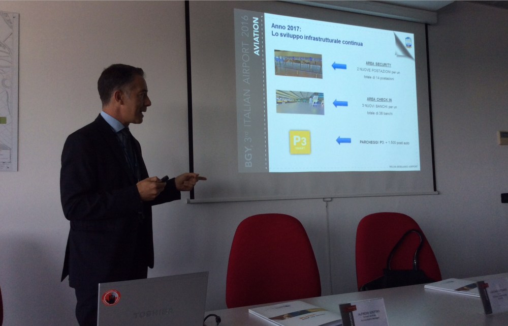 Due check in in più , si sale a 38 #banchi. Quindi due postazioni di security agli imbarchi e 1500 posti auto al P3. Questi gli ampliamenti che #Bergamo ha messo in campo nel 2017 per offrire ancora più maggior offerta e comfort ai propri clienti. Nella foto Giacomo Cattaneo – Aviation marketing manager di #SACBO espone le novità alla stampa.