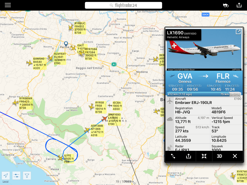 In sequenza si vedono le uscite dalle holding del #BEROK di un volo #Swiss operato da #Helvetic da #Ginevra ed un aereo #AirFrance da #Parigi #CDG che si dirigono a #Bologna, impossibilitati ad atterrare a #Firenze.