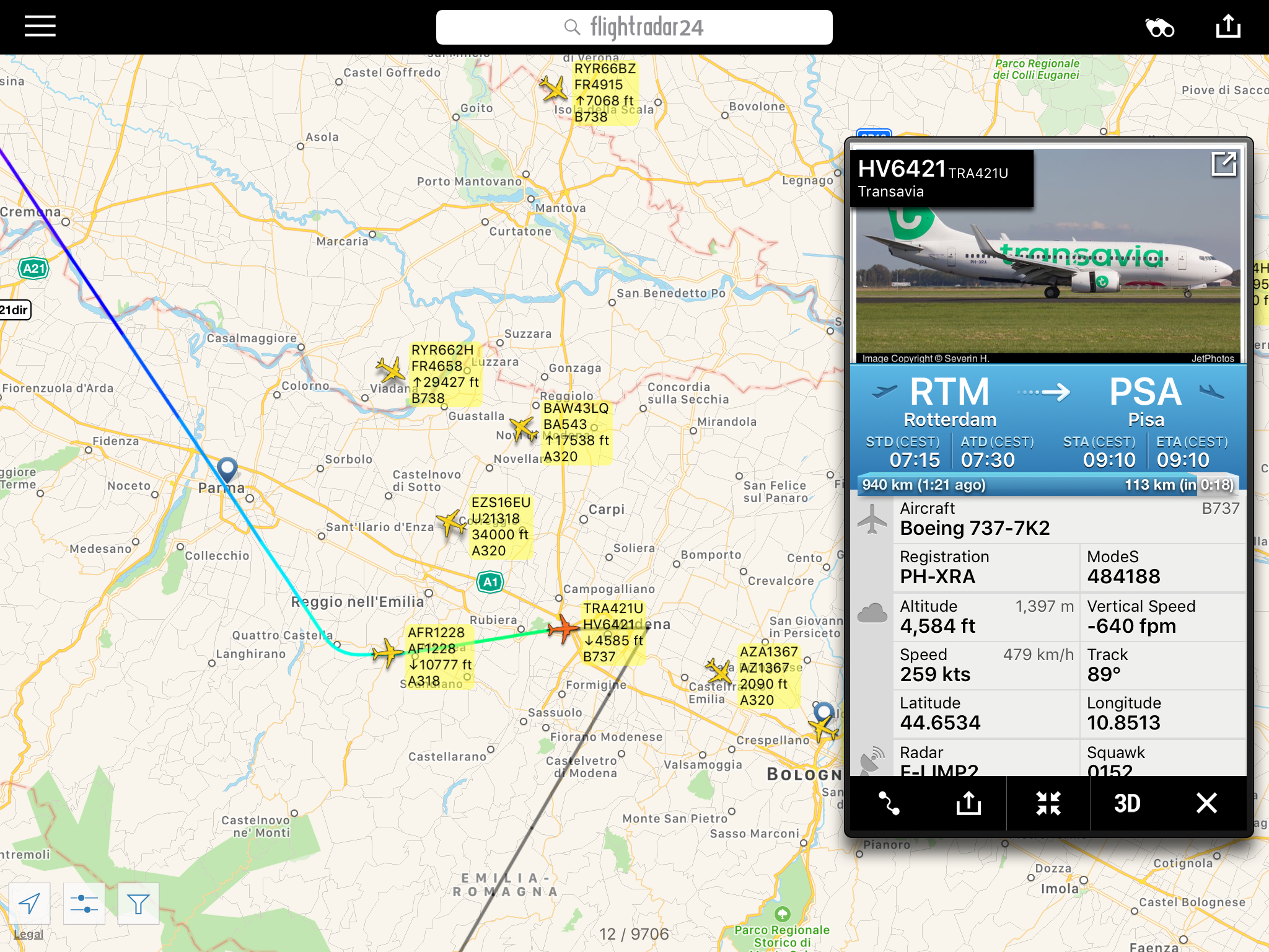 Il primo da #Pisa in questa mattinata e’ il volo #Transavia da #Rotterdam, che non ha raggiunto la verticale dell’aeroporto pisano per attendere, ma e’ andato subito all’aeroporto alternato, in questo caso, come per i seguenti e’ #Bologna.