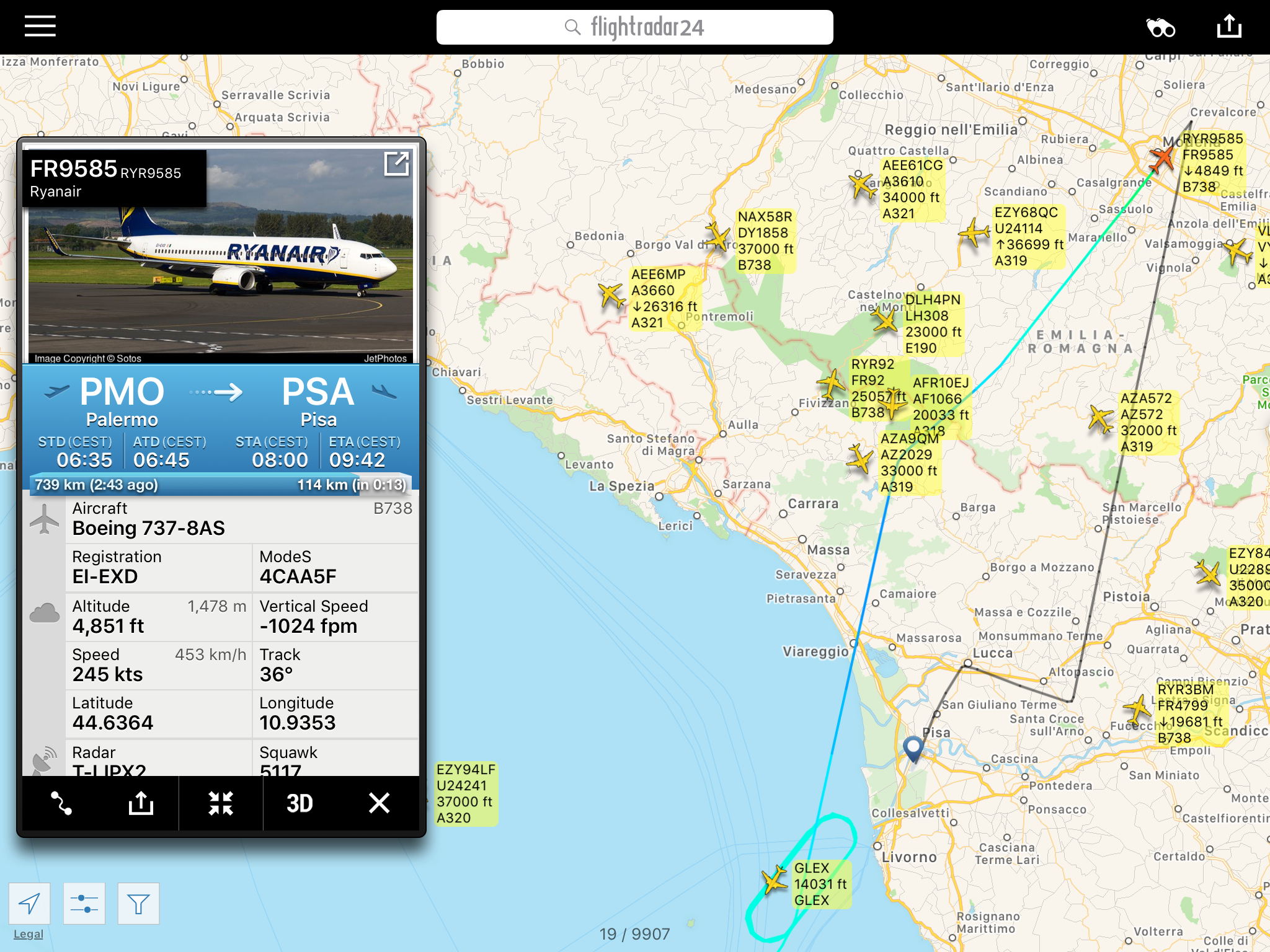 Quindi questo volo #Ryanair da #Palermo per Pisa. Si vede il “biscotto” di attesa che ha fatto prima di decidere di andare all’alternato. E’ una prassi comune attendere eventualmente a discrezione Fino che e’ possibile e poi andare verso un aeroporto che abbia spazi per accogliere questo volo.