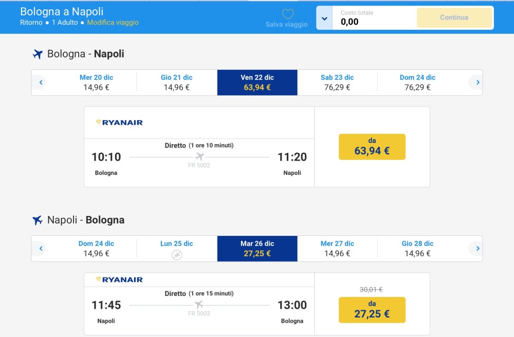 compagnie aeree, rotte, vola e paga poco Guerra ai treni di Ryanair per Natale da Bologna a Napoli Pubblicato da Italiavola il 4 novembre 2017 #Ryanair vuole fare la guerra ai treni ad alta velocità sulla #Bologna – #Napoli. Ecco i prezzi sotto Natale ora al momento a disposizione. #Italo e #Trenitalia che cosa propongono? Condividi: Fai clic per condividere su Facebook (Si apre in una nuova finestra) Facebook Fai clic qui per condividere su LinkedIn (Si apre in una nuova finestra) LinkedIn Fai clic qui per condividere su Reddit (Si apre in una nuova finestra) Reddit Fai clic qui per condividere su Pinterest (Si apre in una nuova finestra) Pinterest Fai clic qui per condividere su Tumblr (Si apre in una nuova finestra) Tumblr Fai clic per condividere su X (Si apre in una nuova finestra) X Mi piace Caricamento... Correlati