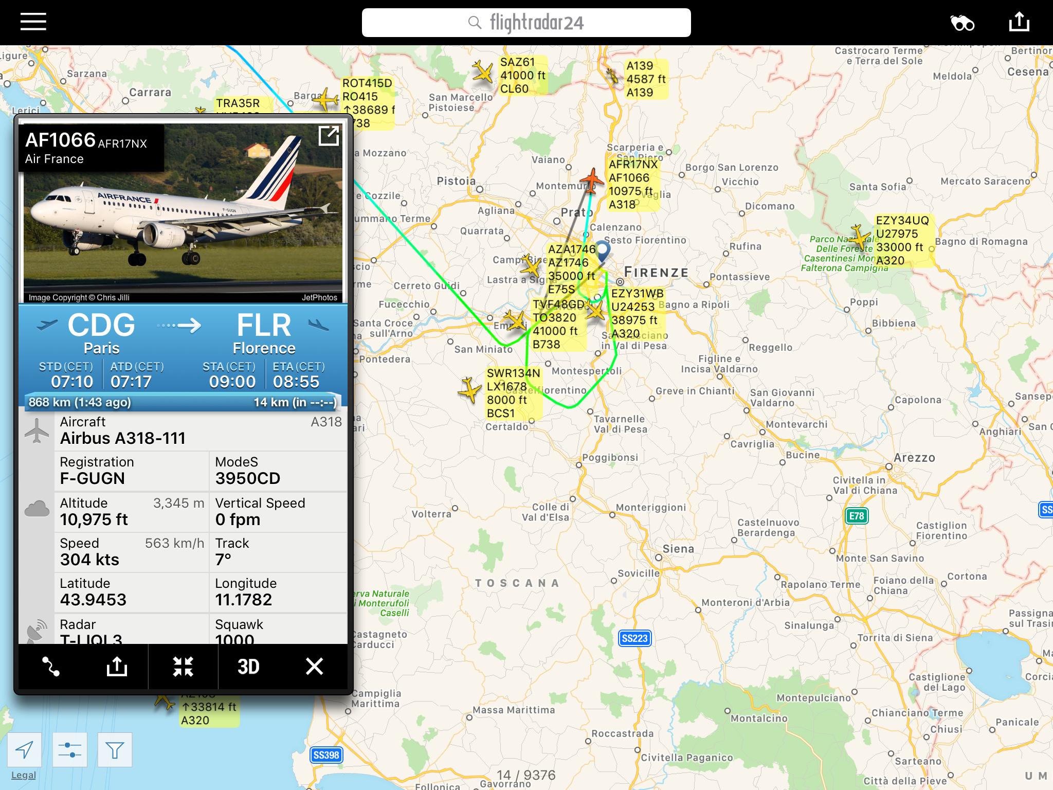 Questa mattina il volo AF1066 da #Parigi CDG per #Firenze e’ atterrato a #Bologna dopo un doppio tentativo di avvicinamento compiuto ed andato a vuoto.