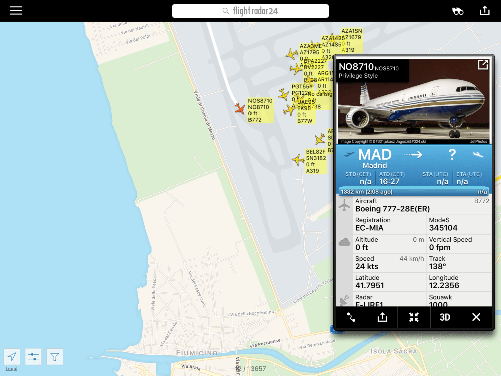 Questo B777-28E ER EC-MIA della Privilege Style e’ atterrati da meno di un ora a #Roma e presumibilmente volerà verso #Male via #Verona.