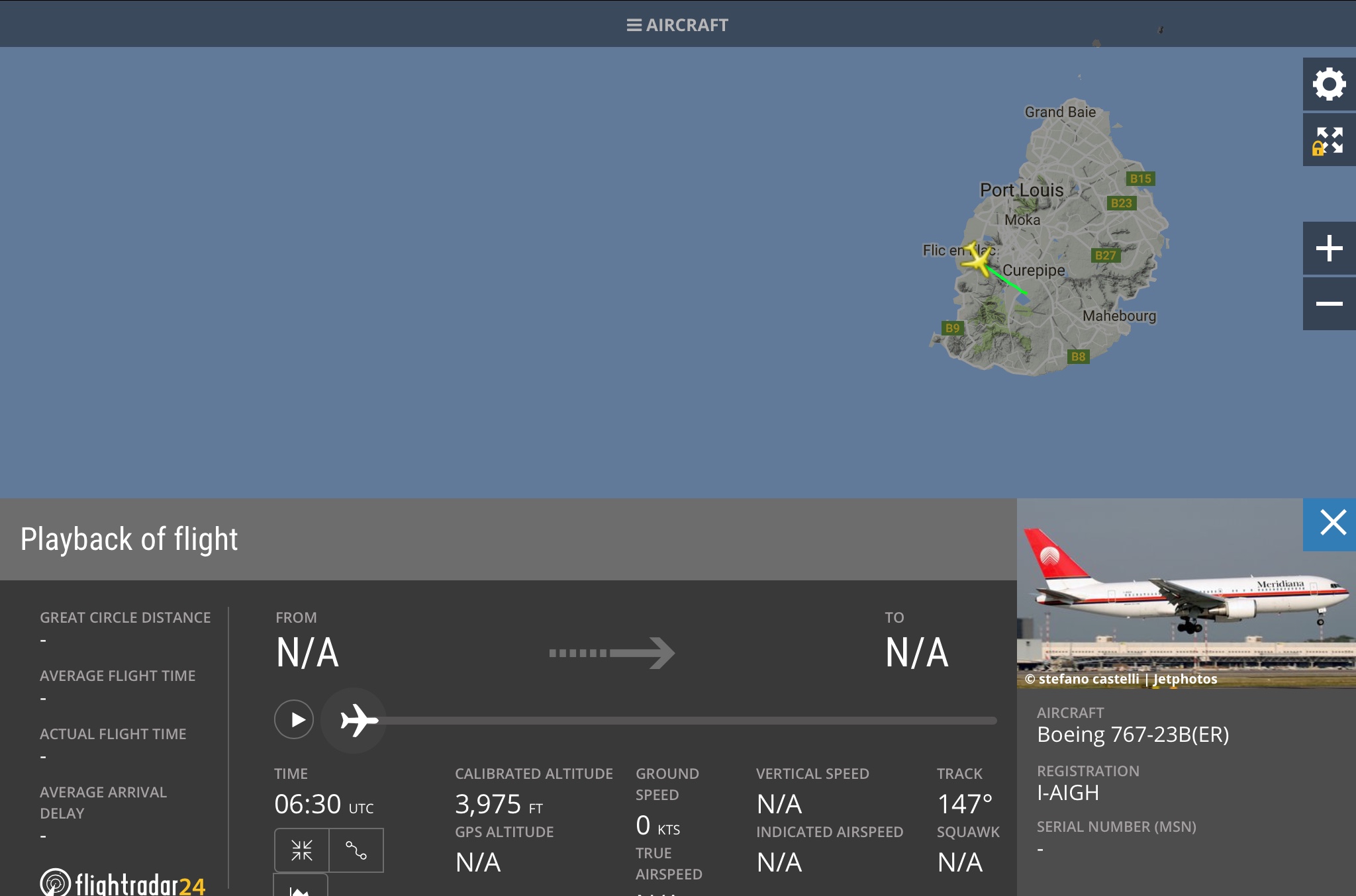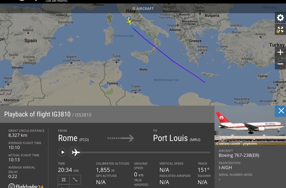 Qualche giorno fa è accaduta un avaria ad un B767-200ER I-AIGH di #Meridiana e c’è questo video su Youtube con le conversazioni ATC. Nella descrizione del video in inglese riporta “On Monday 13 November 2017, Meridiana flight 3811 (Boeing 767-300ER) departed from #Mauritius Airport (MRU) and had an engine failure and shut down after airborne while being around 74 miles away from the airport. The flight turned back for an emergency landing in MRU and had to hold a few minutes due to bad weather and reduced visibility over the airfield. The flight landed safely but got high temperature brakes on the left landing gear due to overweight and high speed landing, which cooled down later on”.