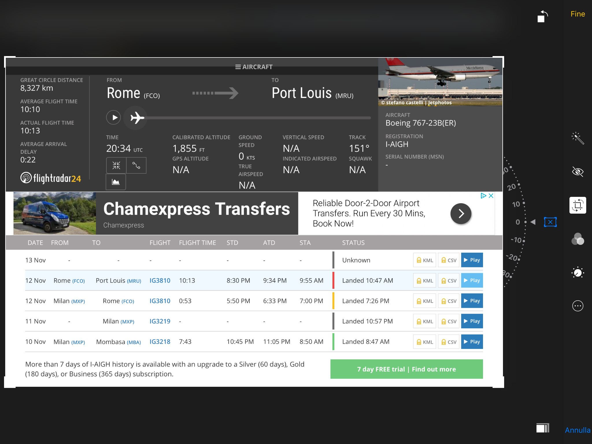 Nella descrizione è indicato un B767-300ER, ma in realtà è unn B767-200ER, come si può desumere da flightradar24.