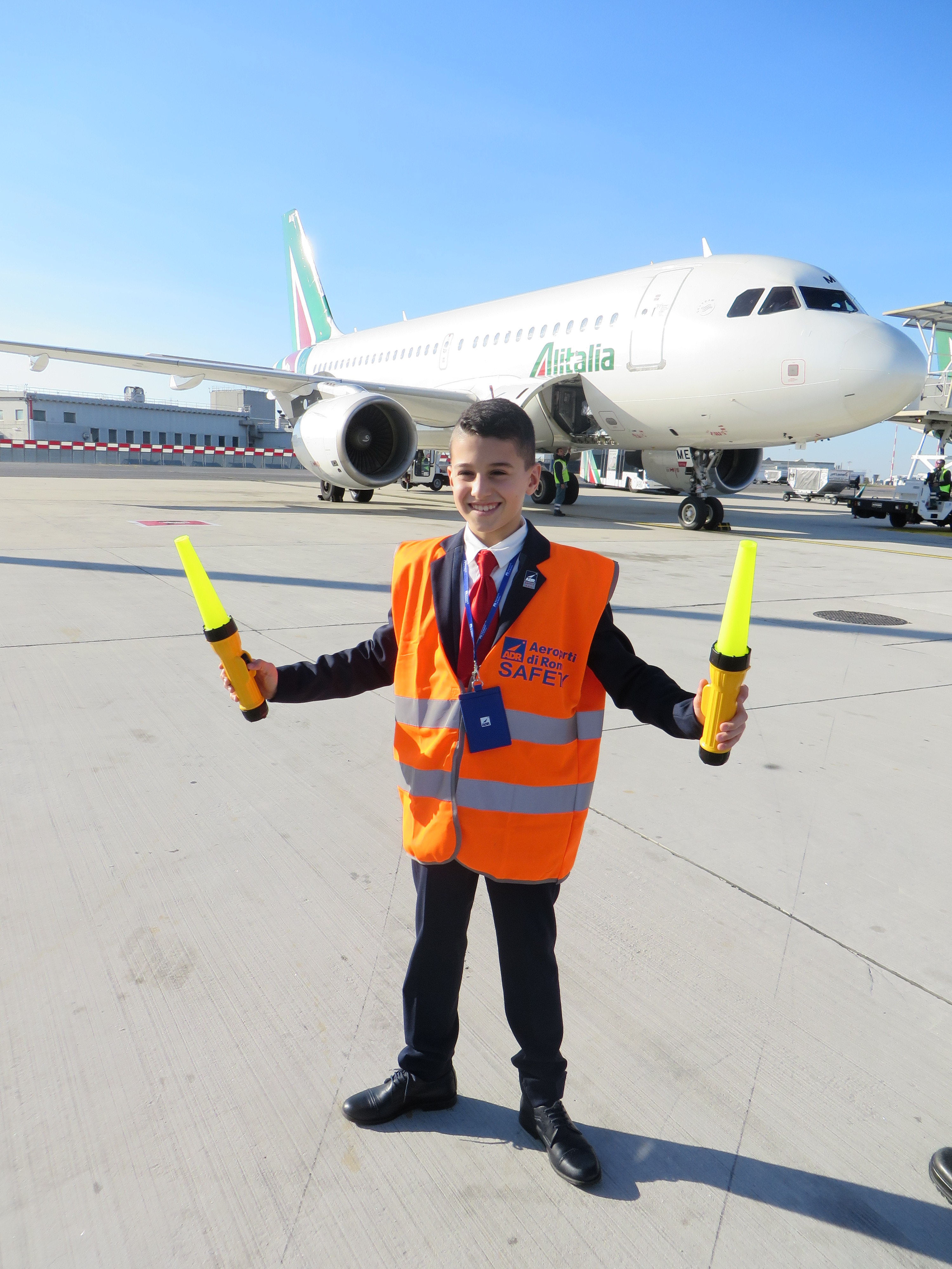 Il Leonardo da Vinci protagonista di un insolito “takeover”: i figli degli addetti di scalo, con divise uguali a quelle dei genitori, hanno partecipato all’operatività aeroportuale