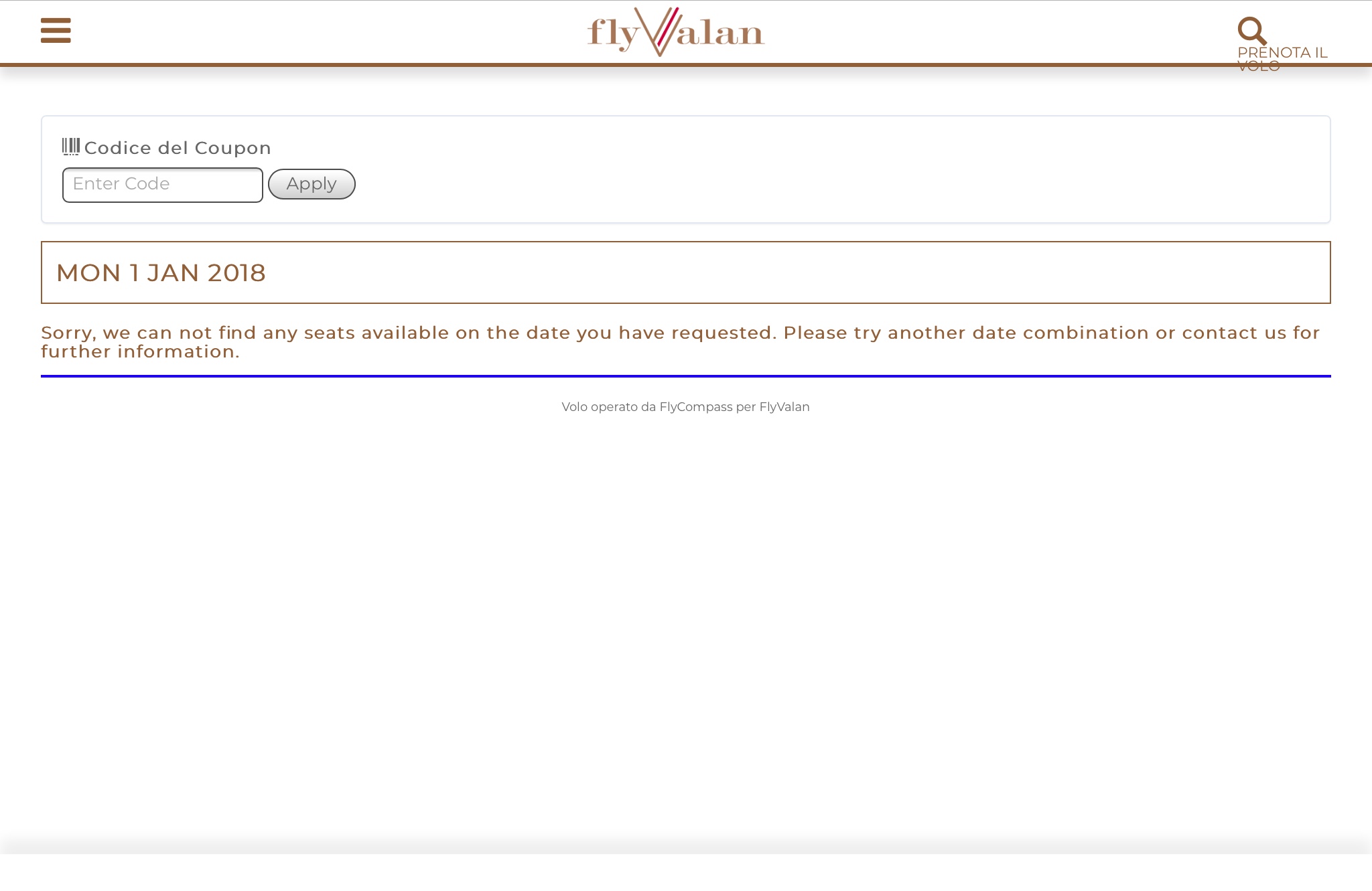 Chiunque si affacci sul sito della compagnia aerea FlyValan può selezionare destinazioni e date, ma poi scopre che….i voli non sono più prenotabili.