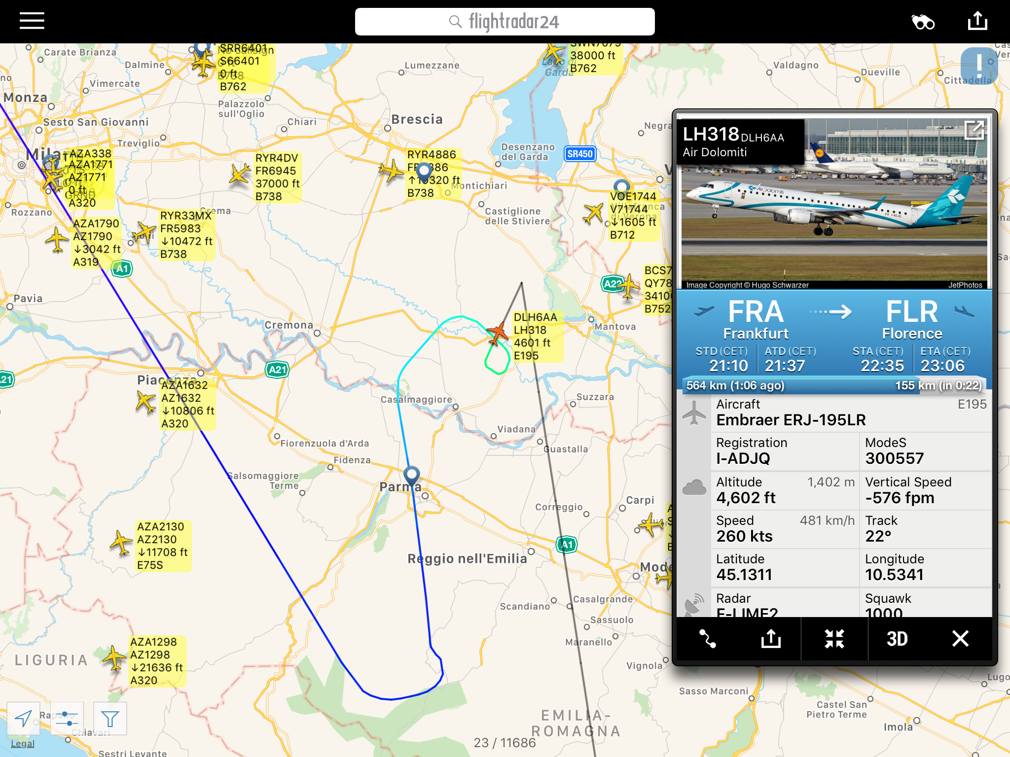 Sempre ieri sera e’ da segnalare che la AF1766 da #Parigi CDG e’ atterrato a #Bologna.