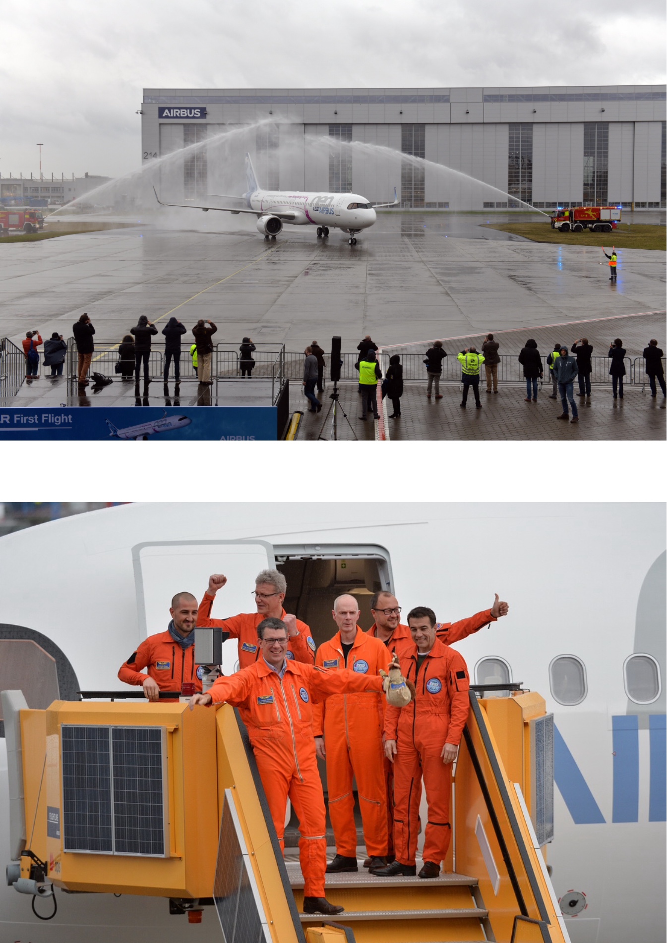 Ai comandi dell’aeromobile, i piloti collaudatori Yann Beaufils e Peter Lofts, gli ingegneri per i test di volo Frank Hohmeister, Jim Fawcett e Cedric Favrichon, e lo specialista di cabina Alexander Gentzsch. Nel corso del volo sono stati testati i comandi di volo, i motori e i principali sistemi dell’aeromobile. L’equipaggio ha inoltre testato la protezione dell’inviluppo di volo sia ad alta che a bassa velocità.