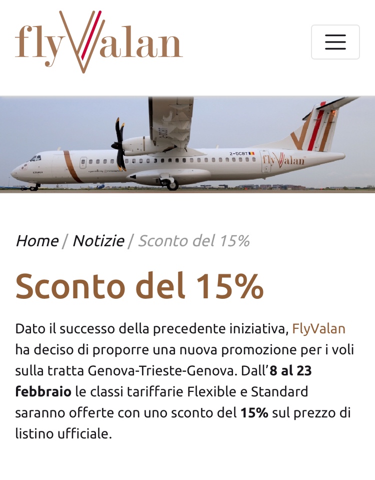 compagnie aeree, rotte FlyValan sconta i voli del 15% Pubblicato da Italiavola il 31 gennaio 2018 Tra il 8 e 23 febbraio la #FlyValan scontera’ del 15% le classi Flexible e Standard sulla #Genova-#Trieste-Genova Condividi: Fai clic per condividere su Facebook (Si apre in una nuova finestra) Facebook Fai clic qui per condividere su LinkedIn (Si apre in una nuova finestra) LinkedIn Fai clic qui per condividere su Reddit (Si apre in una nuova finestra) Reddit Fai clic qui per condividere su Pinterest (Si apre in una nuova finestra) Pinterest Fai clic qui per condividere su Tumblr (Si apre in una nuova finestra) Tumblr Fai clic per condividere su X (Si apre in una nuova finestra) X Mi piace Caricamento... Correlati