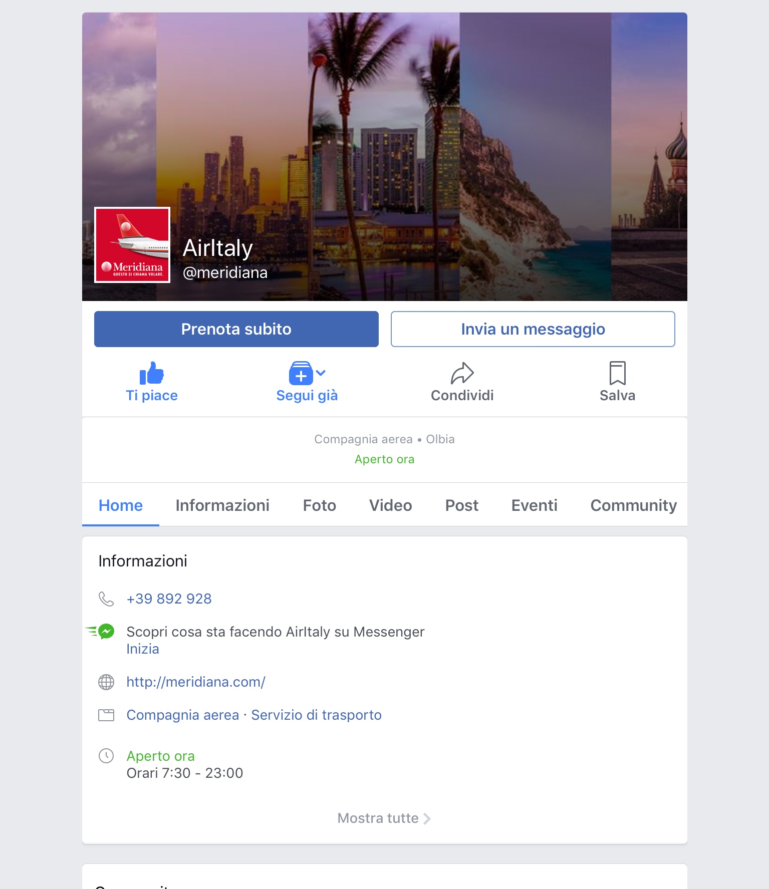 compagnie aeree, rotte La pagina Facebook di Meridiana e’ diventata Airitaly Pubblicato da Italiavola il 27 febbraio 2018 La pagina #Facebook di #Meridiana e’ ora #Airitaly. A breve da giovedì dovrebbe anche esserlo il sito #internet, muterà a quanto si dice nel nome scelto dalla nuova proprietà. Nella foto di pochi minuti fa e’ come appare con la nuova dicitura. Condividi: Fai clic per condividere su Facebook (Si apre in una nuova finestra) Facebook Fai clic qui per condividere su LinkedIn (Si apre in una nuova finestra) LinkedIn Fai clic qui per condividere su Reddit (Si apre in una nuova finestra) Reddit Fai clic qui per condividere su Pinterest (Si apre in una nuova finestra) Pinterest Fai clic qui per condividere su Tumblr (Si apre in una nuova finestra) Tumblr Fai clic per condividere su X (Si apre in una nuova finestra) X Mi piace Caricamento... Correlati