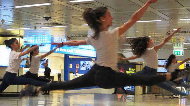 Fiumicino, 7 marzo 2018 – Grande sorpresa stamane per i passeggeri dell’aeroporto Leonardo da Vinci, molti dei quali si sono trovati coinvolti, tra un gate e l’altro, in una vera e propria performance di danza contemporanea. Diciotto ballerini professionisti si sono infatti esibiti tra i viaggiatori, nell’anteprima assoluta a Roma dello spettacolo “Mediterranea”, che andrà in scena sabato 10 e domenica 11 marzo al teatro Olimpico di Roma e verrà replicato il 14 luglio al Teatro Romano di Ostia Antica.