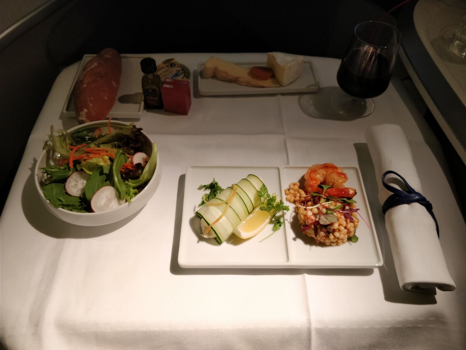 Ecco il servizio di bordo #AirFrance in #businessclass lungo raggio tra Singapore e Parigi.