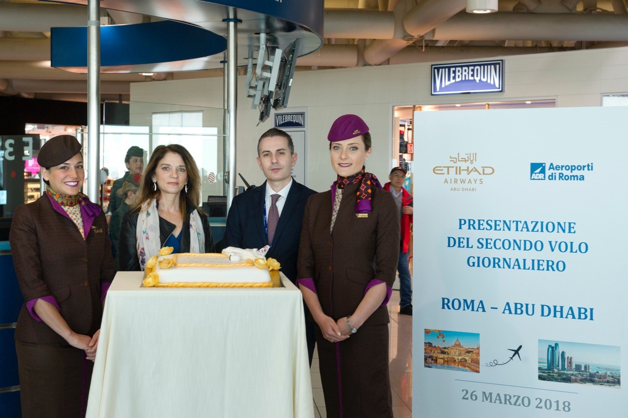 Abu Dhabi, 29 marzo 2018 – Etihad Airways, la compagnia aerea nazionale degli Emirati Arabi Uniti, e Aeroporti di Roma (AdR) hanno celebrato l’introduzione del secondo volo giornaliero tra Abu Dhabi e la capitale italiana. La cerimonia di inaugurazione si è svolta presso l’aeroporto Leonardo Da Vinci di Fiumicino, all’interno dell’innovativa area di imbarco E per i voli internazionali.