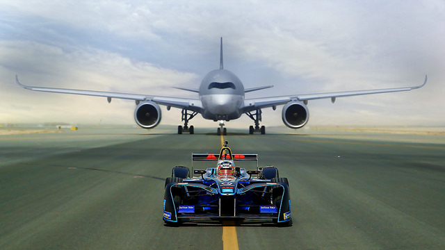 Le due emozionanti gare mostrate nel video hanno visto alla guida della vettura di Formula E il pilota del team DRAGON Jerome D’Ambrosio, che nella prima gara ha dovuto affrontare l’Airbus A350 di Qatar Airways conclusasi con l’aereo che decollava nei cieli sopra lo Stato del Qatar.