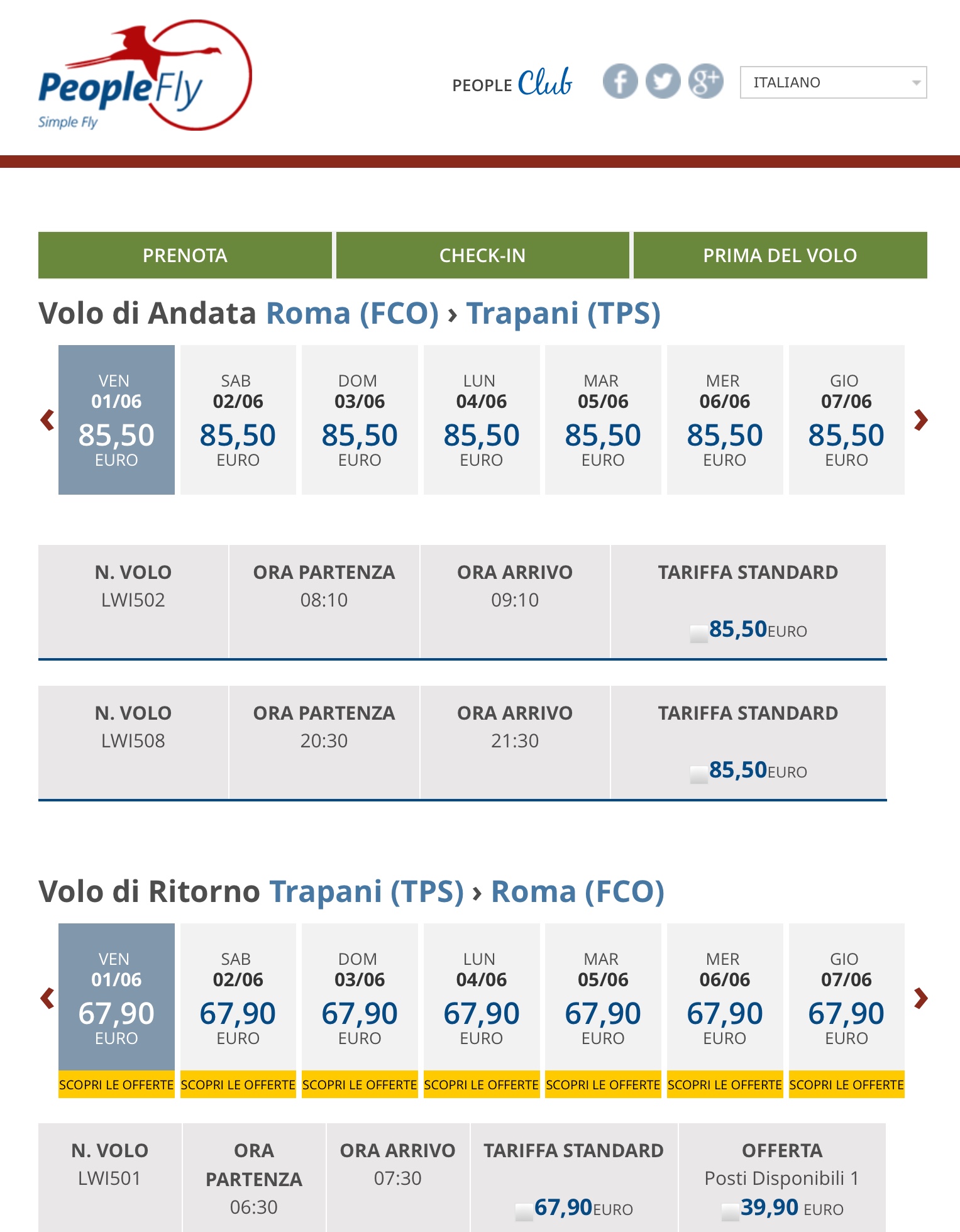 E’ #Lumiwings il vettore che sarà utilizzato dalla paper #PeopleFly per operare i voli da #Trapani e non solo a partire dal 1/6/2018. Lumiwings e’ un vettore greco che ha al momento in flotta un velivolo del tipo Boeing 737-300. Nella seconda immagine tratta dal sito PeopleFly si nota i codici di volo LWI al posto dei precedenti GJT.