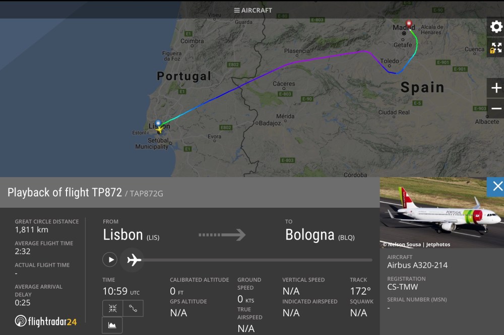 Quest’oggi il volo TP872 da Lisbona a Bologna e’ atterrato fuori programma a Madrid.
