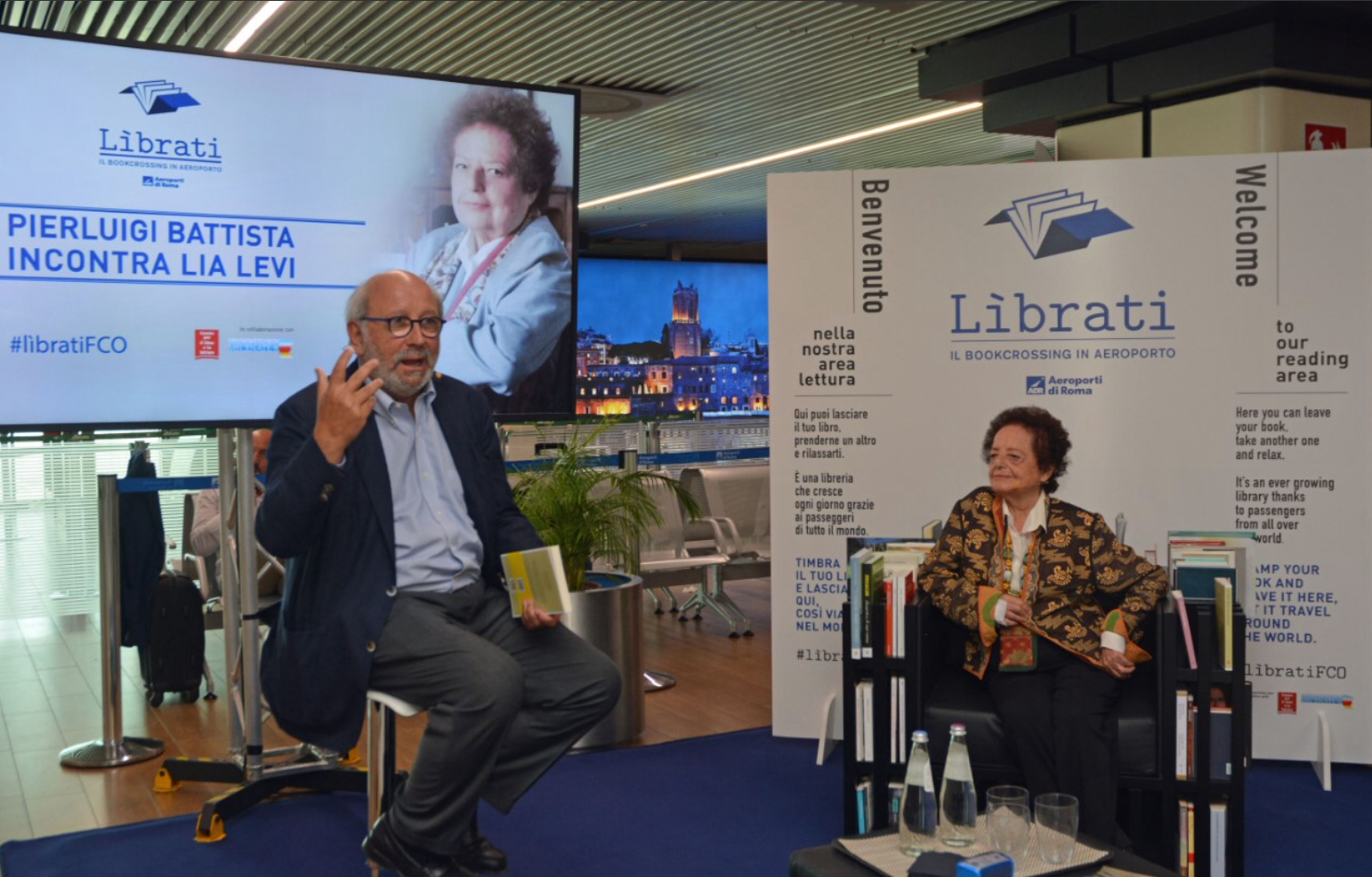 Le biblioteche aeroportuali diventeranno anche luogo di animazione culturale e di scambio di opinioni: ADR e Mecenate 90 hanno infatti organizzato un denso programma di presentazioni di libri di autori famosi e conosciuti dal grande pubblico. Il primo incontro si è tenuto nel primo pomeriggio di oggi presso i gate del Molo B del T1, quando i passeggeri hanno potuto dialogare con Lia Levi. La scrittrice, insieme al giornalista e autore Pierluigi Battista, ha presentato il suo nuovo lavoro, “Questa sera è già domani”, candidato al Premio Strega che verrà assegnato il prossimo 13 giugno.