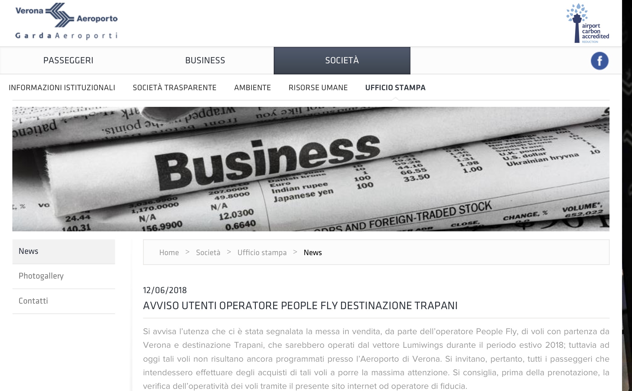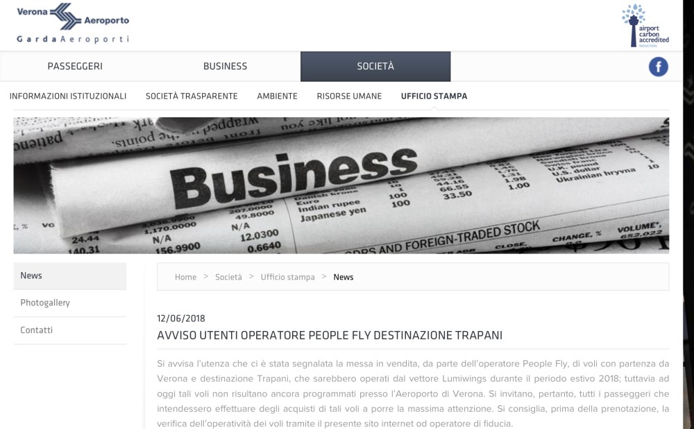 aeroporti, compagnie aeree, rotte PeopleFly : Verona prende le distanze Pubblicato da Italiavola il 16 giugno 201817 giugno 2018 L’aeroporto di Verona scrive che non ha rapporti con PeopleFly che diversamente vende la rotta Verona-Trapani che non ha mattina fino ad ora operato. Condividi: Fai clic per condividere su Facebook (Si apre in una nuova finestra) Facebook Fai clic qui per condividere su LinkedIn (Si apre in una nuova finestra) LinkedIn Fai clic qui per condividere su Reddit (Si apre in una nuova finestra) Reddit Fai clic qui per condividere su Pinterest (Si apre in una nuova finestra) Pinterest Fai clic qui per condividere su Tumblr (Si apre in una nuova finestra) Tumblr Fai clic per condividere su X (Si apre in una nuova finestra) X Mi piace Caricamento... Correlati