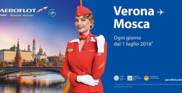 Verona, 13 giugno 2018 – Aeroflot, compagnia di bandiera della Repubblica Russa, annuncia il nuovo volo Verona-Mosca operativo dal 1^ luglio.
