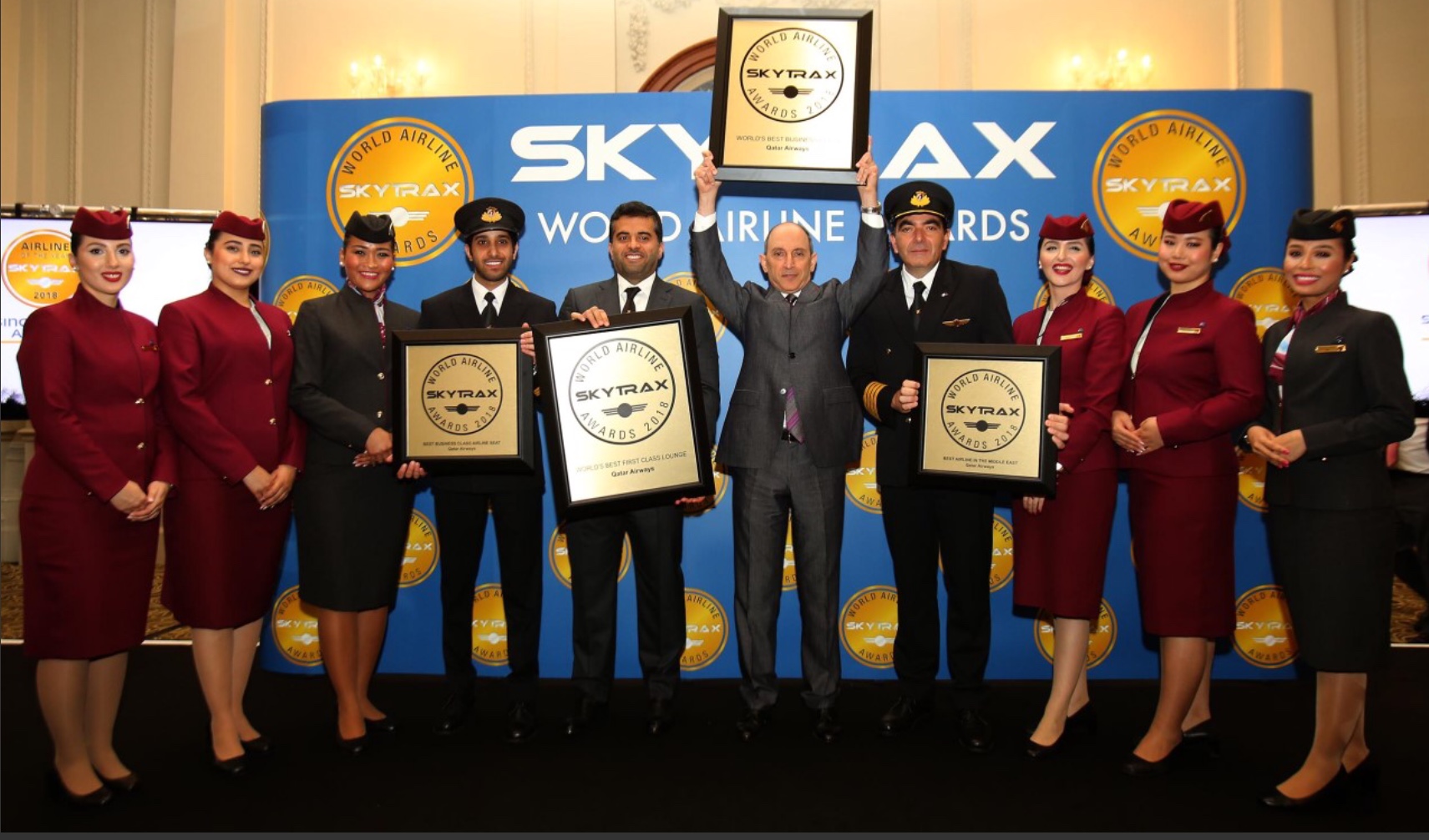 DOHA, Qatar – Qatar Airways è orgogliosa di annunciare la vittoria di quattro prestigiosi premi agli Skytrax World Airline Awards 2018. La pluripremiata compagnia aerea è stata nuovamente eletta ‘Miglior Business Class al Mondo’ durante la cerimonia di quest’anno, tenutasi ieri al Langham Hotel di Londra. La compagnia aerea dello Stato del Qatar ha vinto questo riconoscimento per la sesta volta e il terzo anno consecutivo. L’amministratore delegato del gruppo Qatar Airways, Sua Eccellenza Akbar Al Baker ha ritirato il premio insieme all’Ing. Badr Mohammed Al Meer, COO dell’Aeroporto Internazionale di Hamad (Doha).