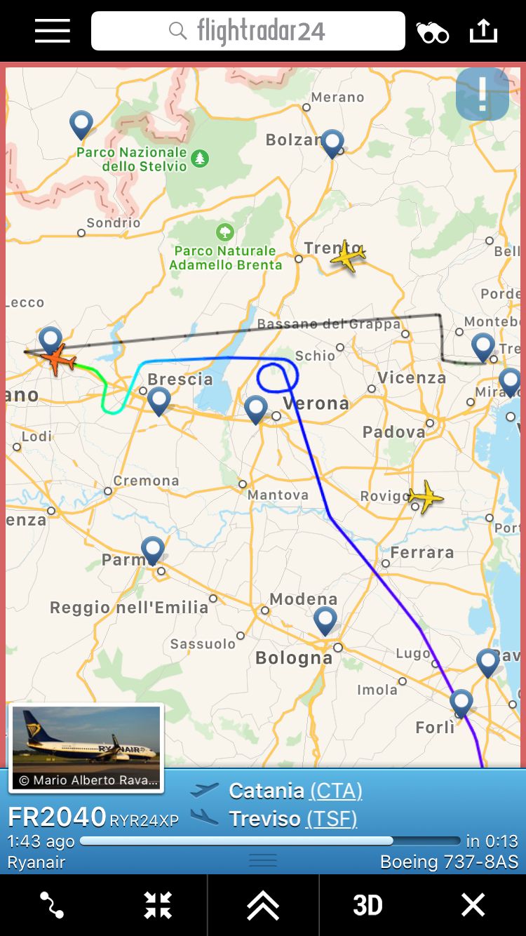 compagnie aeree, rotte Treviso: Altri due voli in altri scali Pubblicato da Italiavola il 22 luglio 2018 Questi due voli Ryanair diretti a Treviso si stanno dirigendo in altri aeroporti. Il volo da Catania sta atterrando a Bergamo ed il volo da Napoli a Venezia. Un altro aereo proveniente da Londra Stansted e’ in holding sul Trentino. Condividi: Fai clic per condividere su Facebook (Si apre in una nuova finestra) Facebook Fai clic qui per condividere su LinkedIn (Si apre in una nuova finestra) LinkedIn Fai clic qui per condividere su Reddit (Si apre in una nuova finestra) Reddit Fai clic qui per condividere su Pinterest (Si apre in una nuova finestra) Pinterest Fai clic qui per condividere su Tumblr (Si apre in una nuova finestra) Tumblr Fai clic per condividere su X (Si apre in una nuova finestra) X Mi piace Caricamento... Correlati