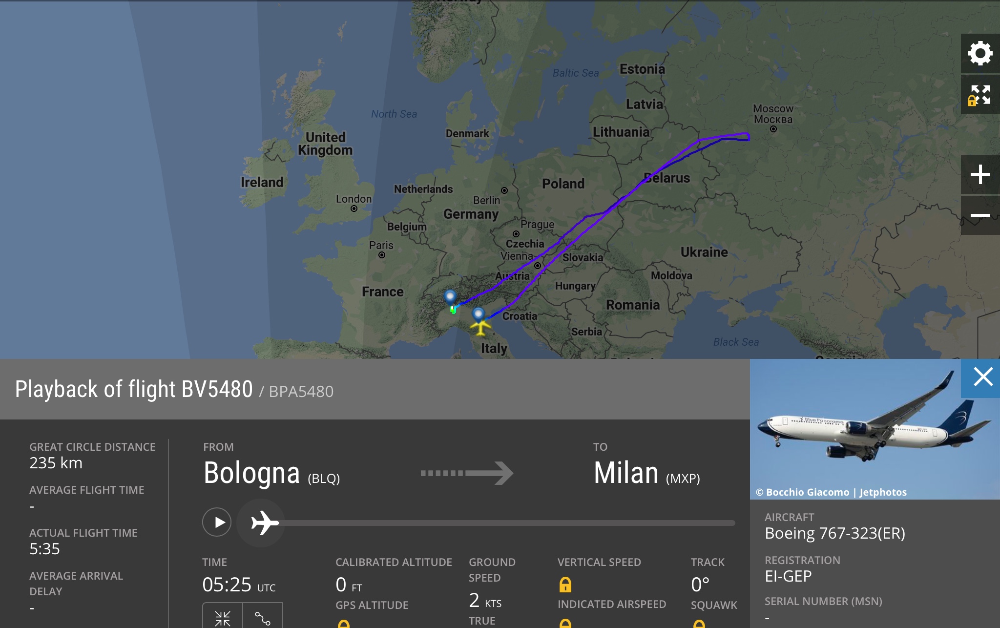 Il B767-323ER EI-GEP di Blue Panorama decollato da Bologna come BV5840 per Shenyang con i turisti cinesi, quando arrivato circa su Mosca ha invertito la rotta per Milano Malpensa. Si esclude la problematica medica, ma e’ più che possibile che la cosa sia riconducibile ad un avaria. In avvicinamento a Malpensa l’aereo ha fatto un mancato avvicinamento e successivamente e’ atterrato. Il volo di domani mattina da Shenyang a questo punto non e’ noto quando arrivera’.