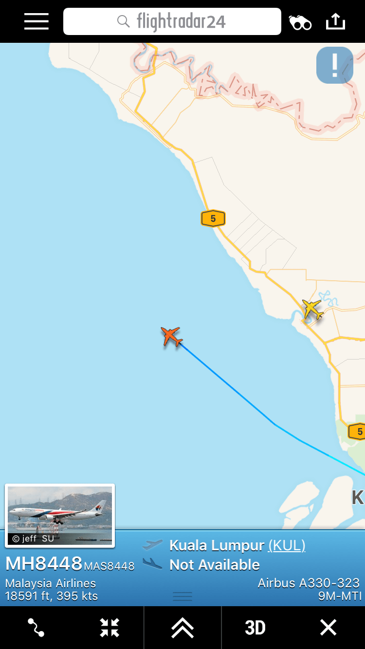 E’ decollato da poco da Kuala Lumpur questo A330-323 9M-MTI diretto a Bologna dove domani trasportera’ ad Osaka via Alma Aty i partecipanti al Gumball 3000. Il volo arrivera’ ben prima delle 21 come previsto dal MH8448 come operativo. Era da tempo che un volo Malaysia Airlines non atterrava in Italia.