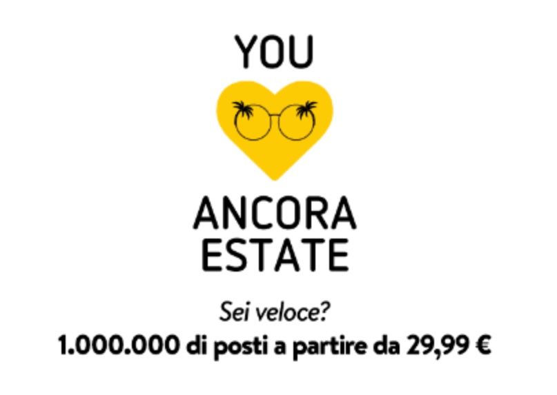Da oggi martedì 28 agosto fino al prossimo giovedì 30 agosto Vueling mette a disposizione 1.000.000 di posti a partire da €29,99 a tratta per volare verso destinazioni nazionali e internazionali servite dalla compagnia aerea dal 26 settembre 2018 al 31 gennaio 2019