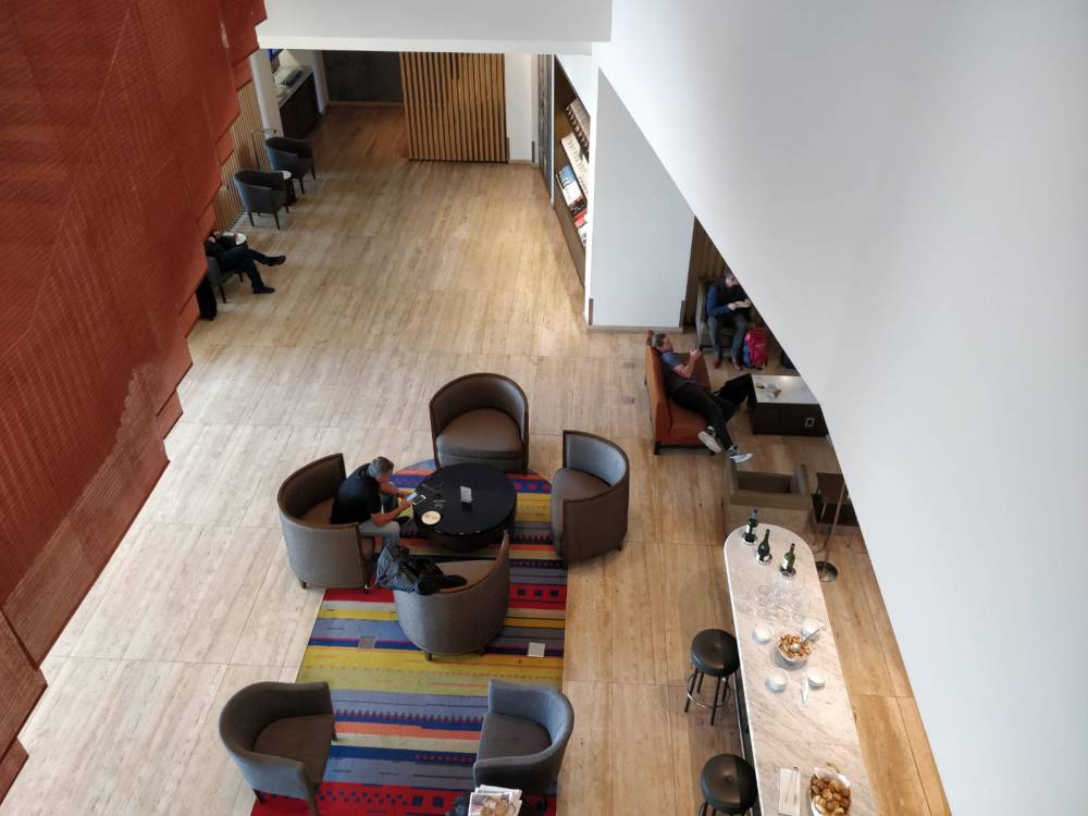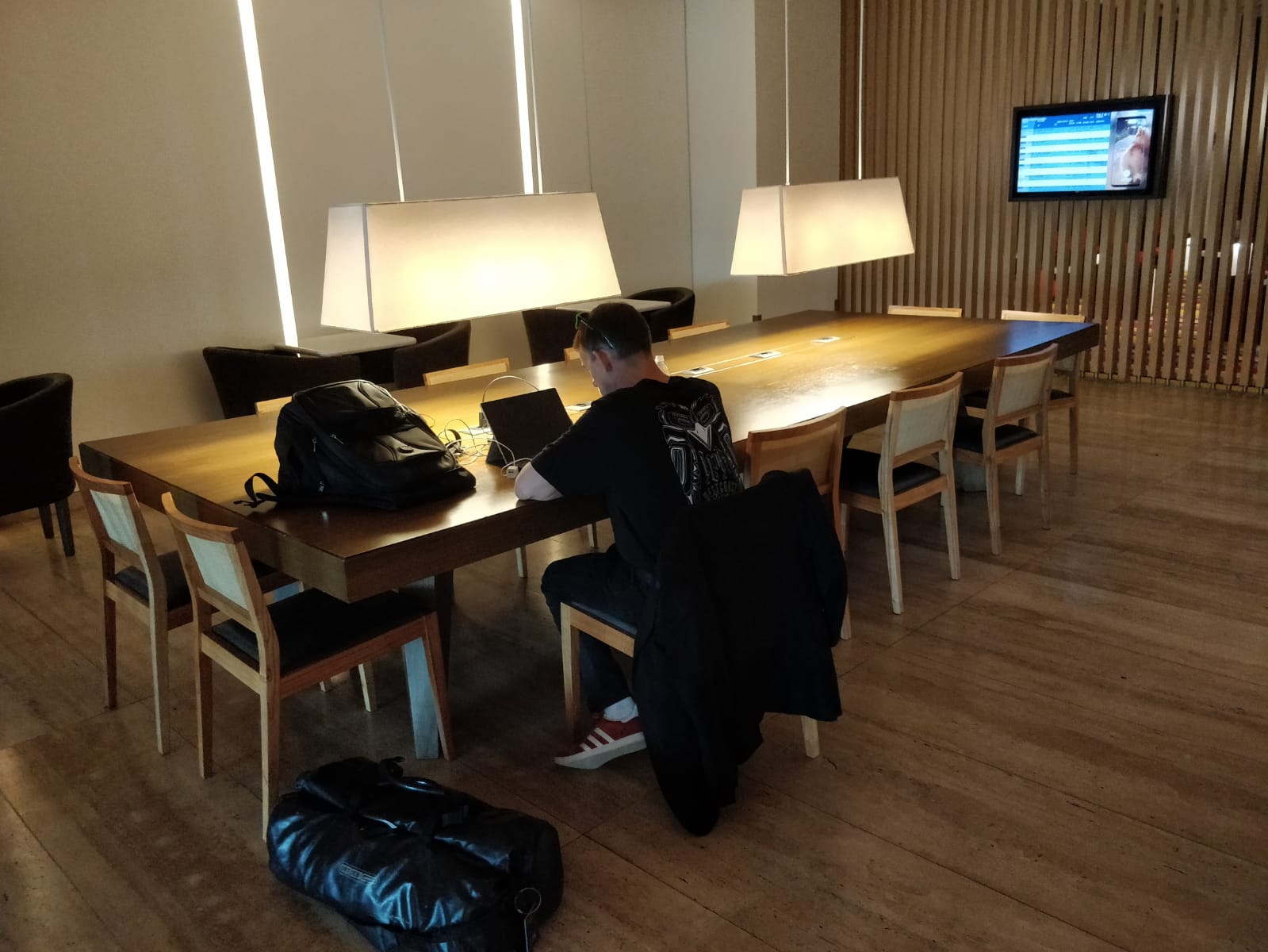 La lounge Latam di Santiago del Cile è divisa in due, all’ingresso i passeggeri business (il mio caso) entrano a destra mentre i frequent flyer a destra. La parte business è su due piani. Al piano inferiore c’è un’area pranzo a buffet con molte cose da mangiare in stile assaggini (le foto sono esplicative), ci sono delle sedute di attesa, le toilette e le docce. Al piano superiore ci sono due aree buffet (meno fornite di quella inferiore), una sala relax dove riposare, un’area TV, un’area bambini, le toilette e Delle poltrone con vista piazzale da una parte e esterno terminal dall’altra. Il cibo è molto buono e con parecchia scelta. Le toilette e le docce molto pulite. La stampa è solo in lingua spagnola e non si può portare via. Nel complesso è molto valida. Il report e’ di AA.