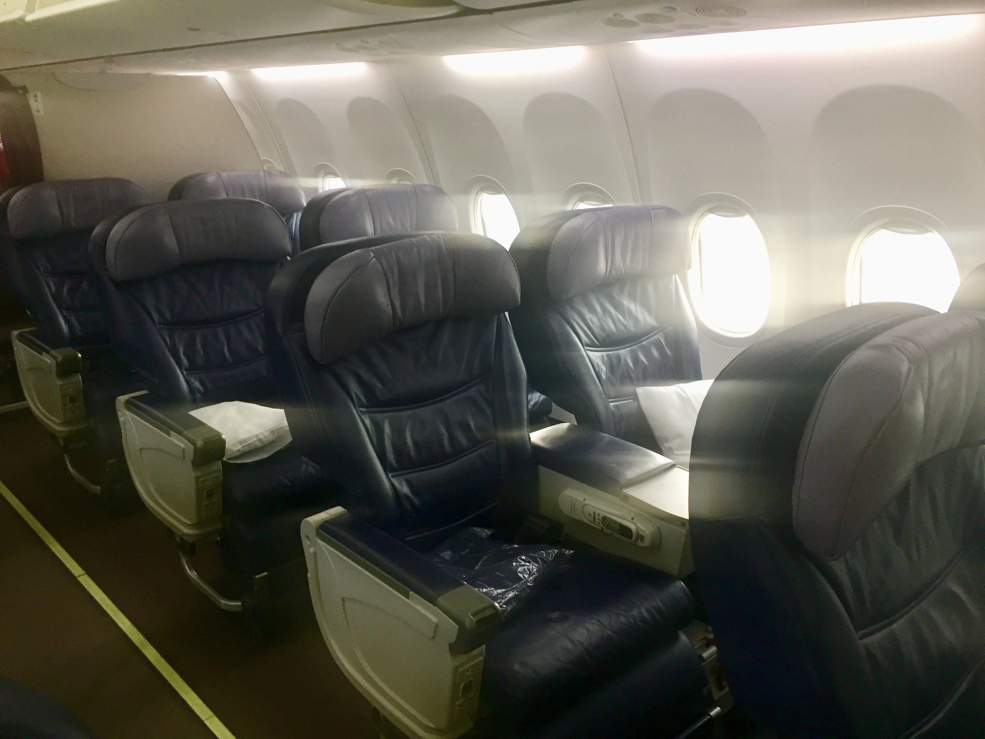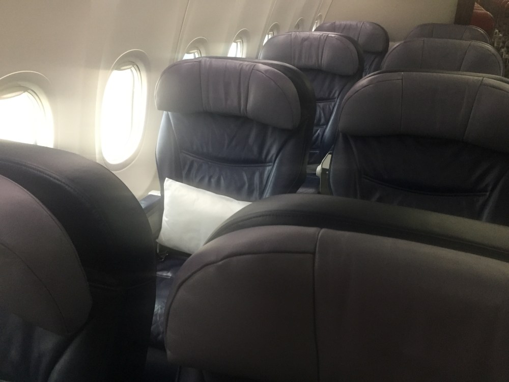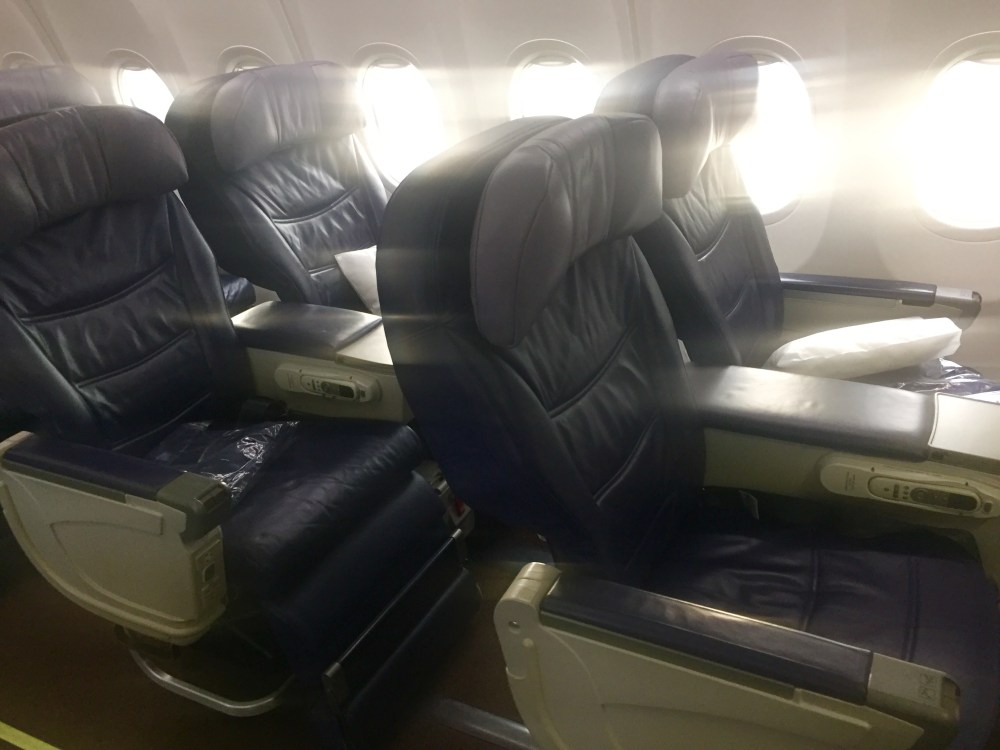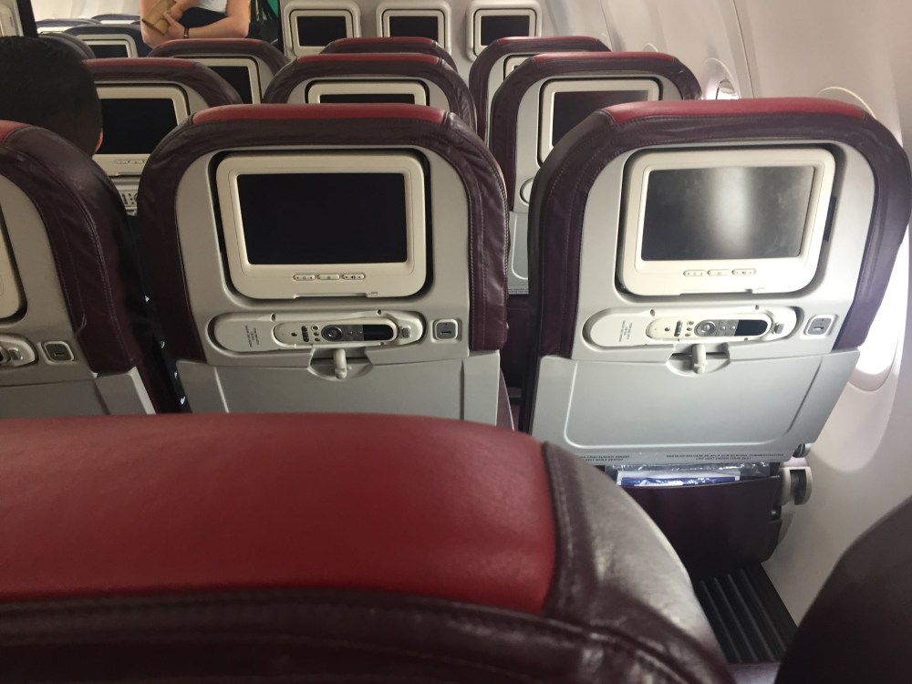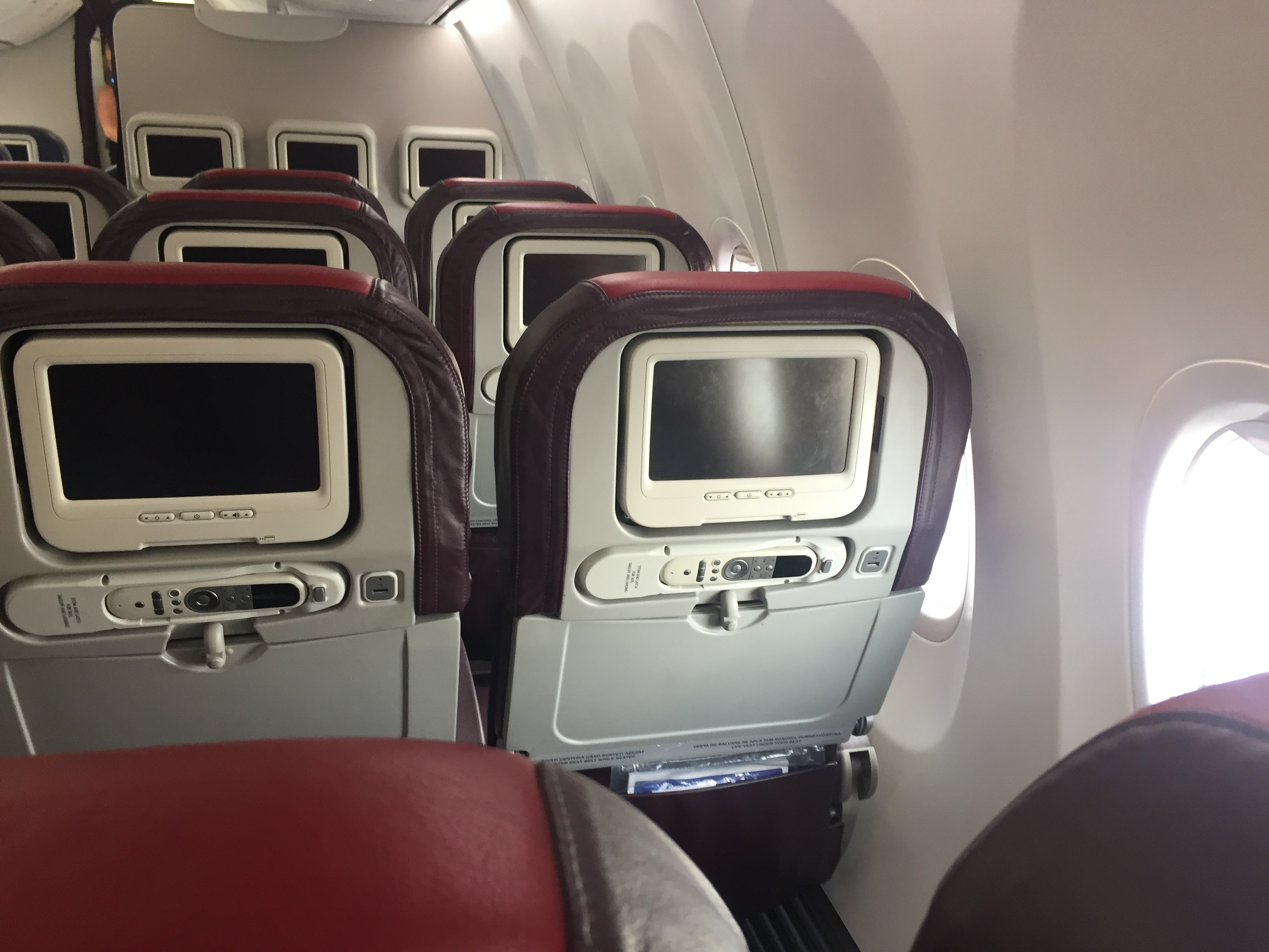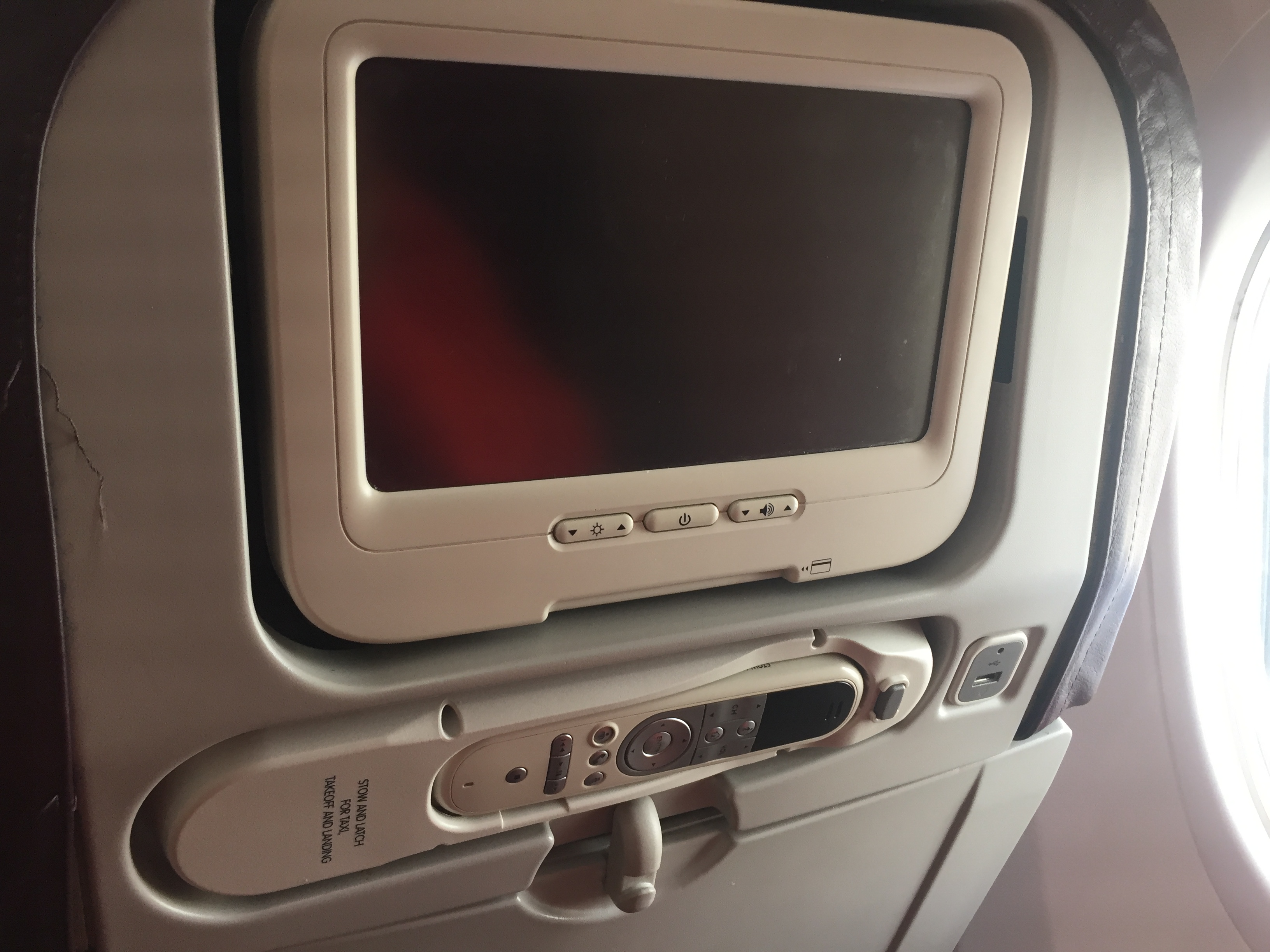 L’economica e’ equipaggiata con generosi e comodo sedili in pelle. Ognuno e’ con monitor personale e telecomando.