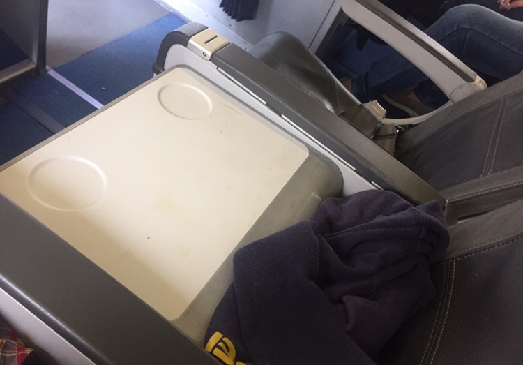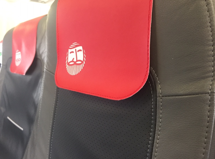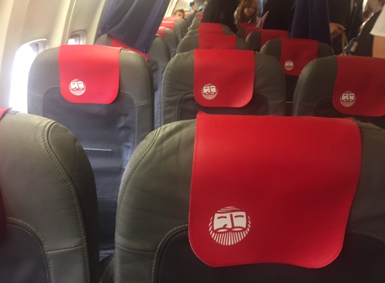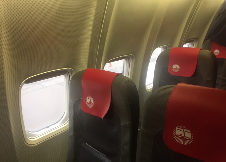Ci sono le tendine divisorie come si tempi di Lufthansa, tra la business Class e la economica. Un tocco di italianita’ le belle salviette in similpelle rosse con il marchio Ernest.