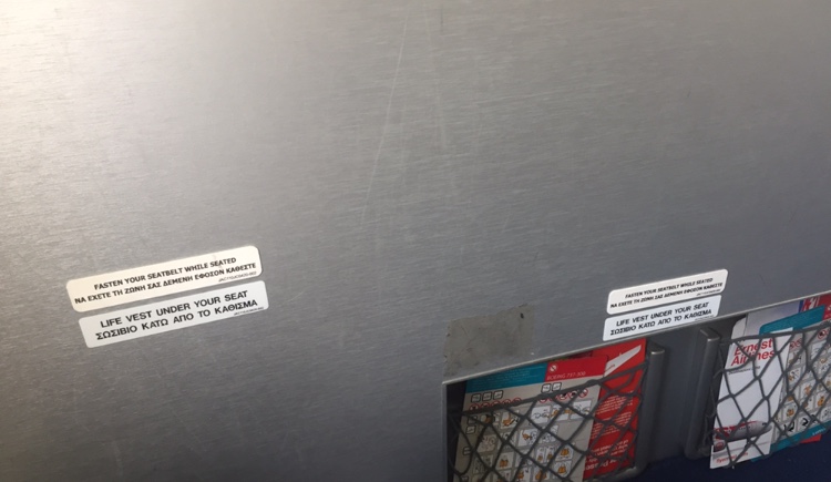 Ha le marche greche il B737-330 dove siamo stati a bordo questo pomeriggio, ma ha all’interno i cromosomi di chi lo ha ordinato e cioè Lufthansa. I sedili Recaro grigi con le prime file il posto centrale bloccato e inutilizzabile a causa della dimensione e del porta bevande. Quindi le scritte da qualche parte in teutonico. L’aereo e’ rimasto con il vettore tedesco fino a non molto tempo fa e cioe’ tardo 2016. Oggi vola con Lumiwings da maggio, era D-ABEE, ora SX-LWA. Ma nulla e’ cambiato. E’ da maggio in noleggio alla italiana Ernest Airlines con la formula ACMI.