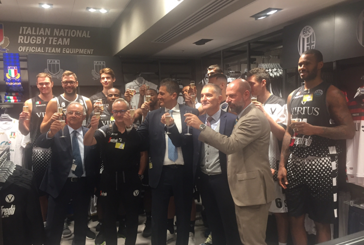 “Per Macron è una giornata speciale” ha commentato Carlo Pelloni, Chief Financial Officer Macron, “perché non solo si svelano le maglie della Virtus, squadra storica e gloriosa della città, con la quale siamo arrivati all’ottavo anno di collaborazione, ma perché la presentazione viene fatta qui in aeroporto, luogo chiave per la vita e la crescita della città e del territorio, con cui vantiamo una collaborazione più recente, ma molto proficua. Macron è un’azienda in continua crescita e con una presenza internazionale che ormai è preponderante, siamo in tanti a sfruttare regolarmente l’aeroporto per le nostre trasferte, e ne stiamo apprezzando la continua evoluzione. Adesso, avere il negozio, è motivo di ancor maggior orgoglio. E sapere che anche la Virtus lo utilizzerà, per tornare a competere in Europa, lo è ancora di più” “Per quanto riguarda le maglie” ha continuato Pelloni, “che la Virtus indosserà nella stagione che la vede riaffacciarsi in Europa, e che si presenta carica di aspettative, voglio spendere due parole sulla filosofia sottostante allo sviluppo e al design. Come sempre dove c’è grande tradizione e storia ci ispiriamo al passato, citandolo senza copiarlo e rileggendolo in chiave moderna. Le maglie avranno la spalla che segue la tendenza NBA ed è di miglior confort per i giocatori, e saranno caratterizzate da tessuti molto leggeri e traspiranti. Diverso approccio fra Italia e Europa, più tradizionale quella per il campionato italiano più moderna quella per la Basketball Champions League”.