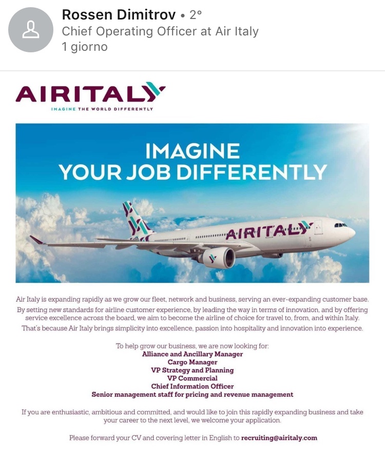 I cervelli del Commerciale passeggeri, cargo , sviluppi futuri e settori informatici e’ tutto da trovare. Non sembra preoccupante la cosa?