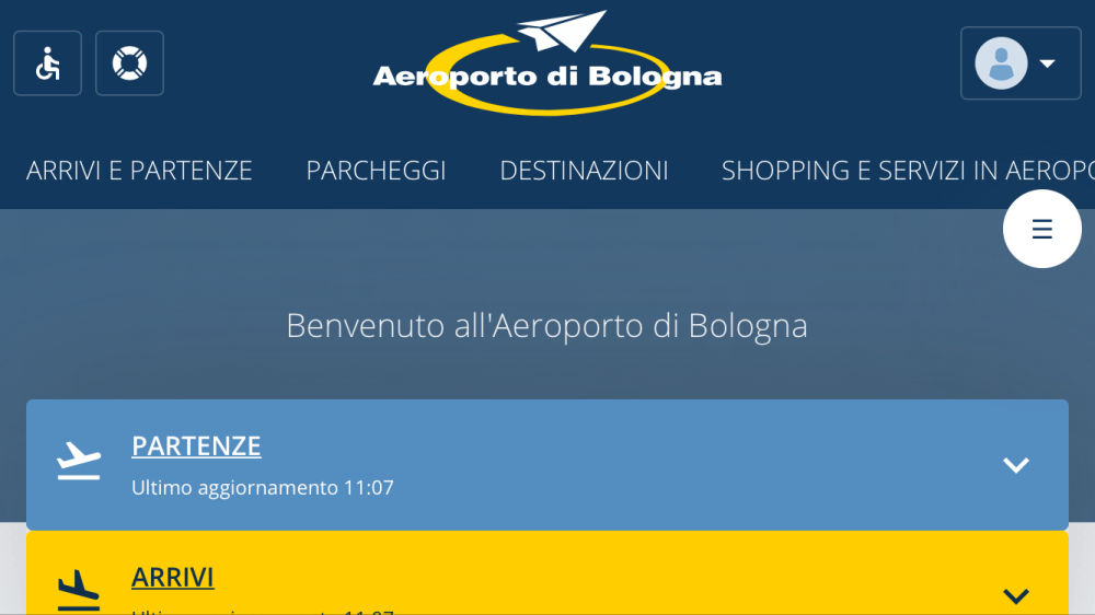 A quattro anni dall’ultimo restyling, il sito internet del Marconi (www.bologna-airport.it)