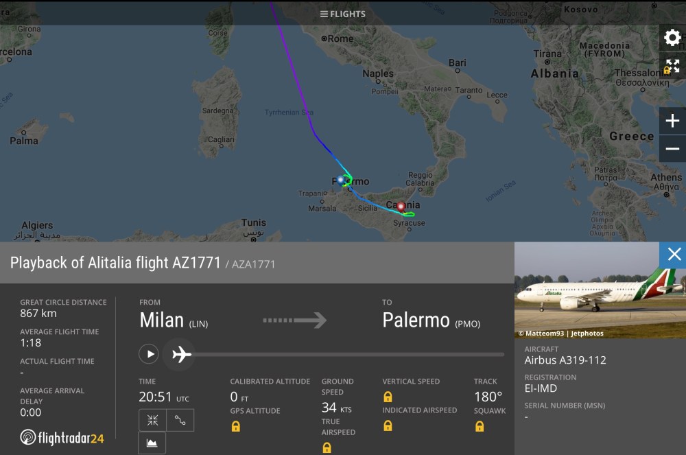 aeroporti, compagnie aeree, rotte Volo Alitalia da Milano per Palermo atterra a Catania Pubblicato da Italiavola il 27 novembre 2018 Ieri sera un volo Alitalia da Milano Linate per Palermo e’ atterrato a Catania. Nell’immagine il volo AZ1771 ha effettuato holding di attesa, poi la decisione di mettere prua su Catania. Condividi: Condividi su Facebook (Si apre in una nuova finestra) Facebook Share on LinkedIn (Si apre in una nuova finestra) LinkedIn Condividi su Reddit (Si apre in una nuova finestra) Reddit Share on Pinterest (Si apre in una nuova finestra) Pinterest Condividi su Tumblr (Si apre in una nuova finestra) Tumblr Condividi su X (Si apre in una nuova finestra) X Mi piace Caricamento... Correlati