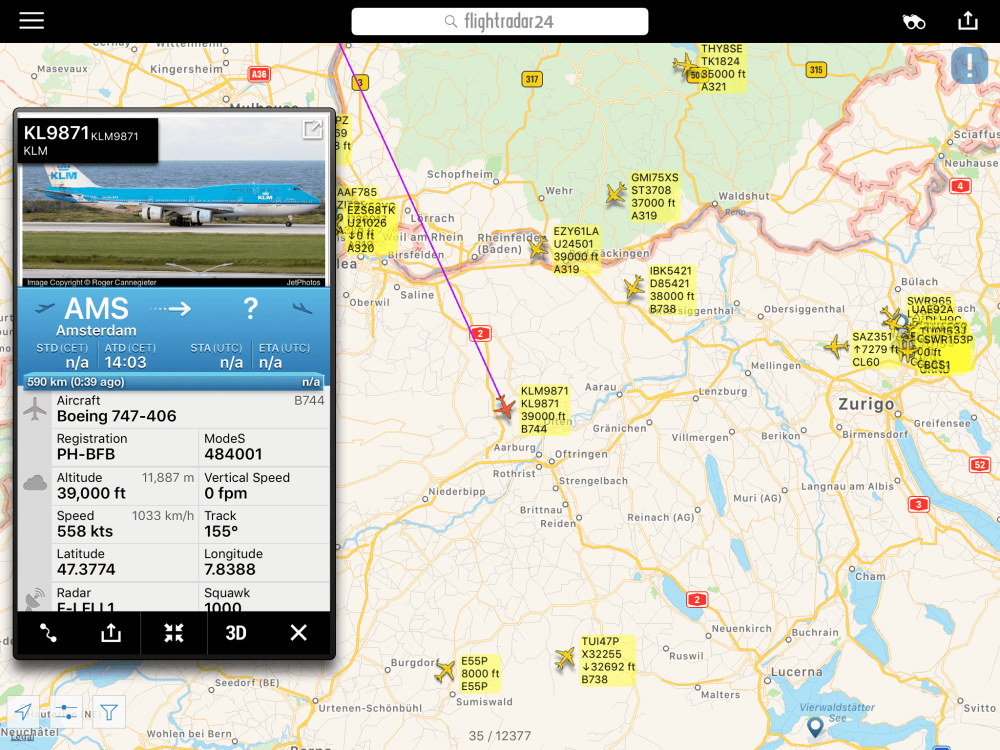 Il B747-406 PH-BFB e’ quasi a metà del suo volo da Amsterdam a Roma come KLM9871. Non e’ un volo passeggeri, ma bensì di trasferimento. Il velivolo andrà in IAC per essere sverniciato ed adotterà una verniciatura di Corendon e verrà riportato ad Amsterdam. L’aereo ha già terminato la sua vita operativa e dopo il suo arrivo verrà posto nelle vicinanze di Schiphol dove Corendon ha un suo albergo.