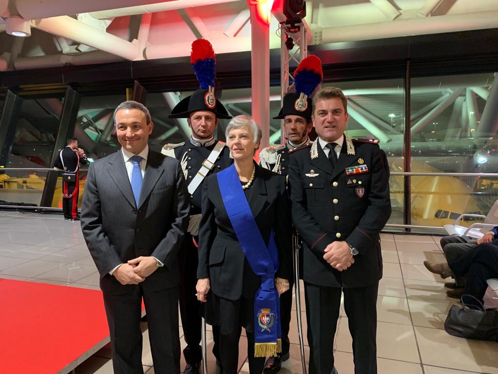 All’esibizione hanno preso parte, oltre ai passeggeri presenti e ai numerosi ospiti : Ugo de Carolis, Amministratore delegato di ADR, il Generale Carlo Magrassi, Consigliere del Ministro della Difesa, il Generale Massimo Mennitti, Capo del 5 Reparto “Relazioni Esterne” del Comando Generale dell’Arma e il Colonnello Francesco Gargaro Comandante Provinciale dei Carabinieri di Roma .